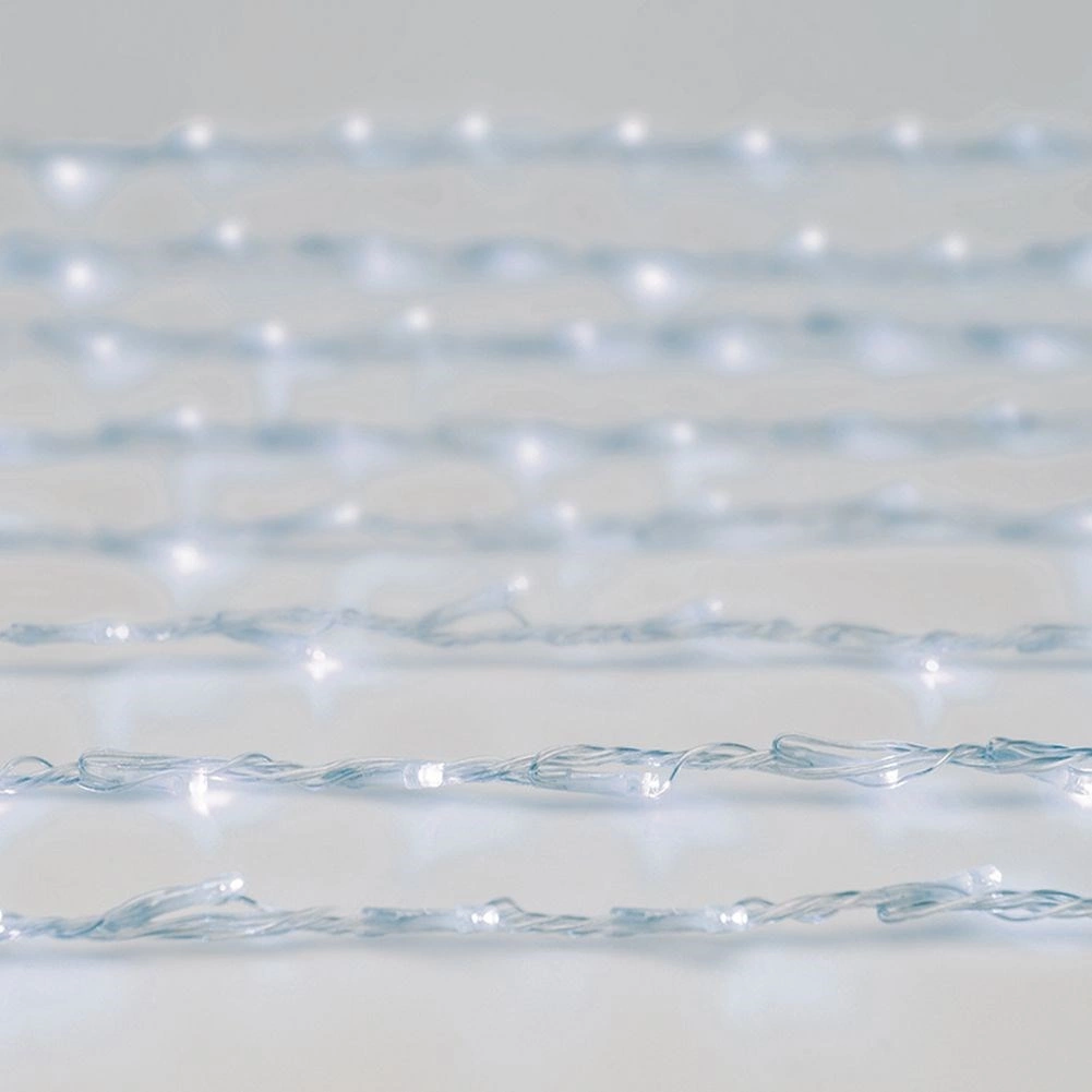 Stvorite čarobnu blagdansku atmosferu uz svjetlosnu viseću zavjesu s 220 LED u hladno bijeloj boji. Jedan set sadrži 11 snopova, svaki s 20 LED, s razmakom od 20 cm za ravnomjerno i efektno raspoređeno svjetlo. Zahvaljujući 5 režimima svjetljenja s funkcijom memorije lako ćete odabrati idealan efekt za svaku prigodu.