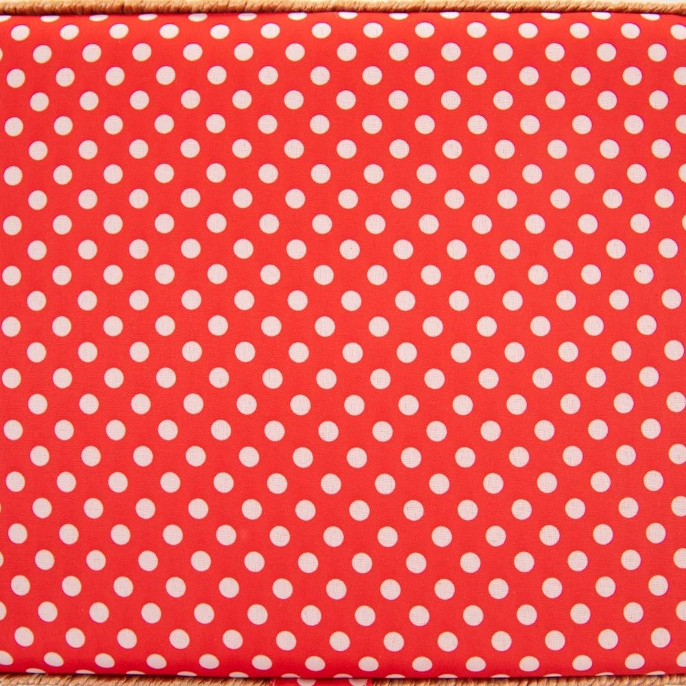 Crvena tkanina s bijelim točkama i dekorativno pletivo daju šivanju dozu šarma, a košara se lijepo uklapa u svaku kućnu radionicu.