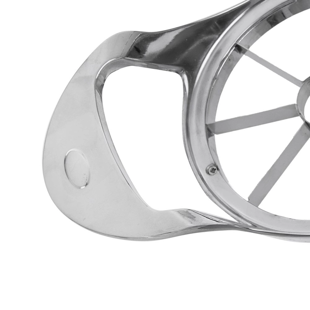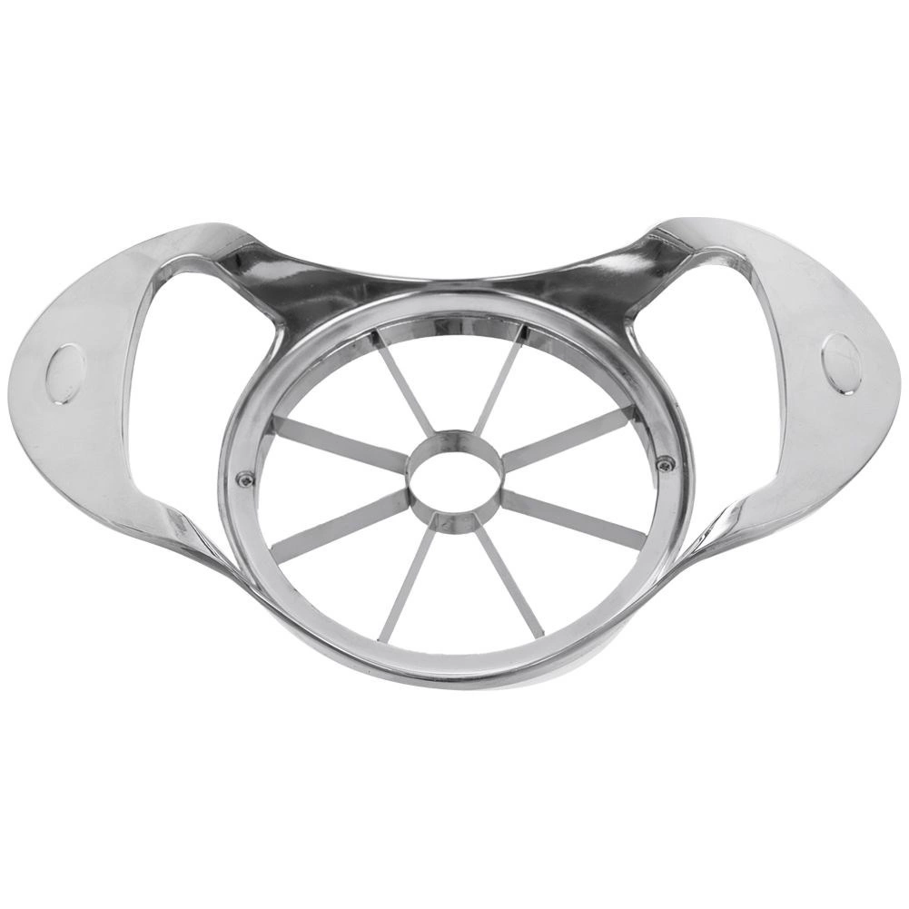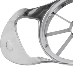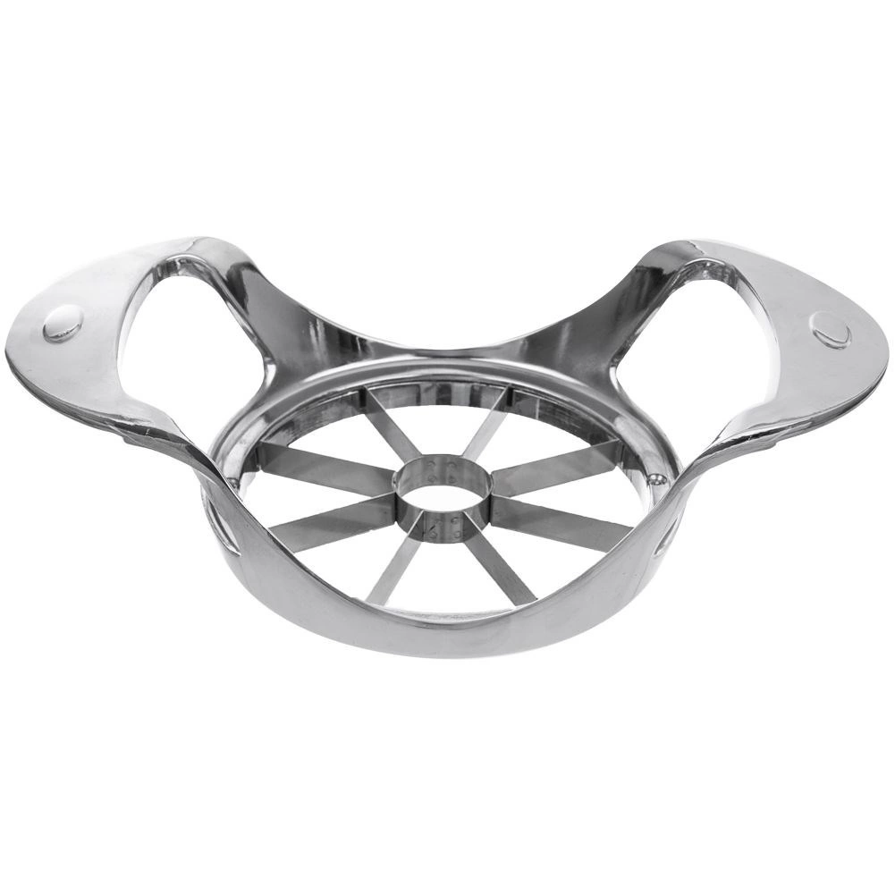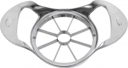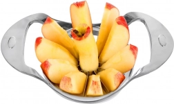 Ovaj robusni rezač od kvalitetnog nehrđajućeg čelika u elegantnoj srebrnoj izvedbi savladava jabuke promjera do cca 9 cm. Jednim pritiskom stvara jednake kriške i istodobno uklanja košticu – idealno za užine, salate, deserte i pečenje.