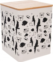 Elegantan i funkcionalan spremnik za udobno i higijensko skladištenje hrane za pse, mačke, ptice i male glodavce. Metalno tijelo u bijeloj boji je čvrsto i izdržljivo, poklopac od bambusova drva sa silikonskom brtvom osigurava hermetičko zatvaranje i štiti sadržaj od vlage i gubitka arome.