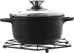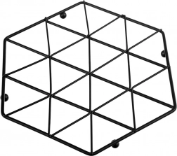 Izrađen od kvalitetnog metala u crnoj boji, čvrst je i izdržljiv za svakodnevnu uporabu. Zahvaljujući univerzalnim dimenzijama 22,5 × 22,5 cm prikladan je za većinu lonaca i tava. Podložak nije samo praktičan, već i dekorativan, pa ga možete bez problema ostaviti na stolu kao dizajnerski dodatak.