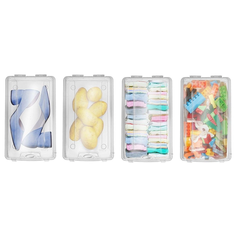 Zatvoriva kutija za cipele odličan je izbor za preglednu i higijensku pohranu obuće, odjeće, igračaka ili dokumenata. Prozirne stijenke omogućuju trenutačan uvid u sadržaj bez potrebe za otvaranjem. Čvrste bočne kopče pouzdano drže poklopac na mjestu, a ventilacijski otvor smanjuje vlagu i mirise.