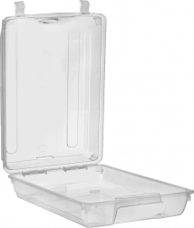 Preklopni poklopac s dva čvrsta klipa štiti sadržaj od prašine i vlage, dok integrirani ventilacijski otvor potiče protok zraka.