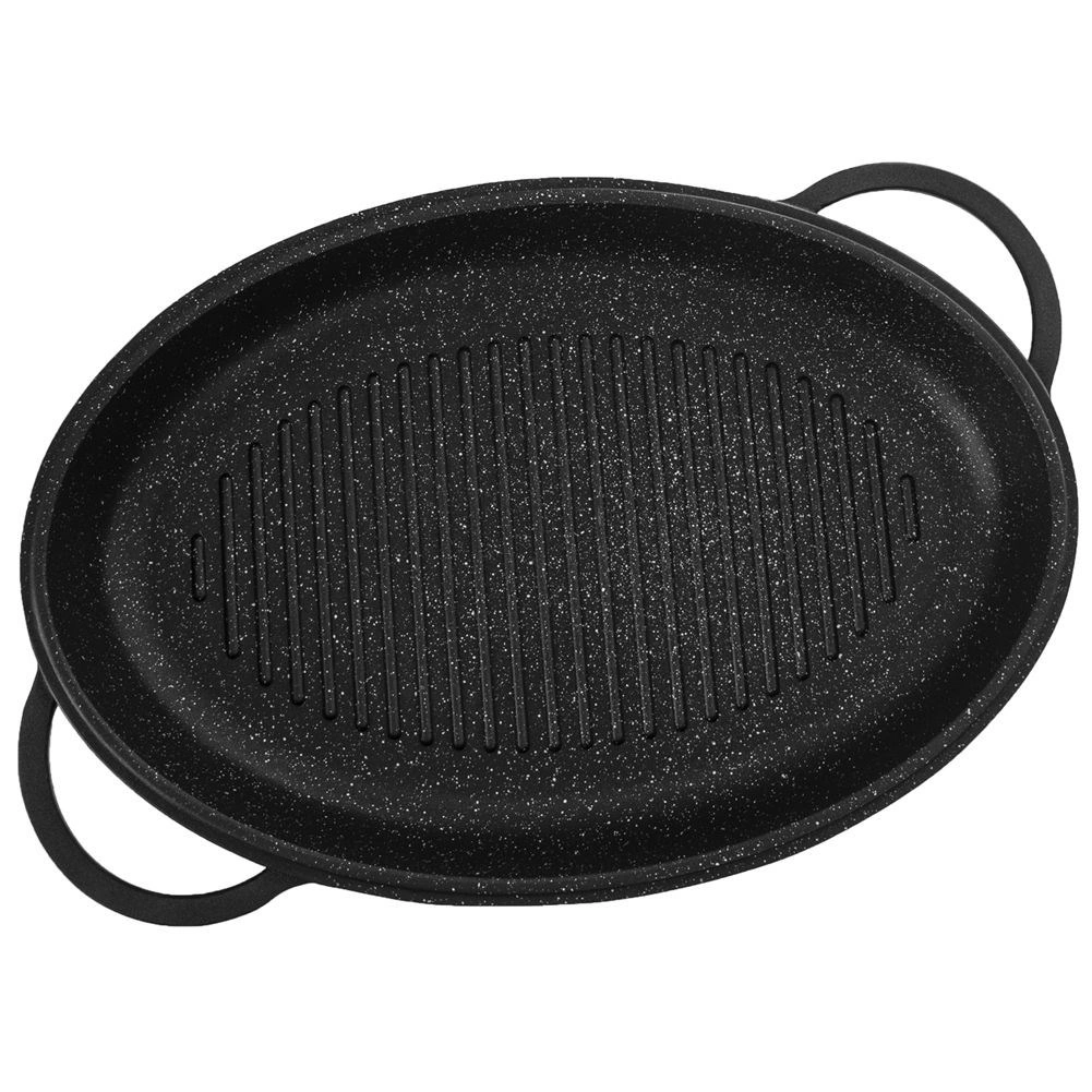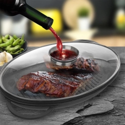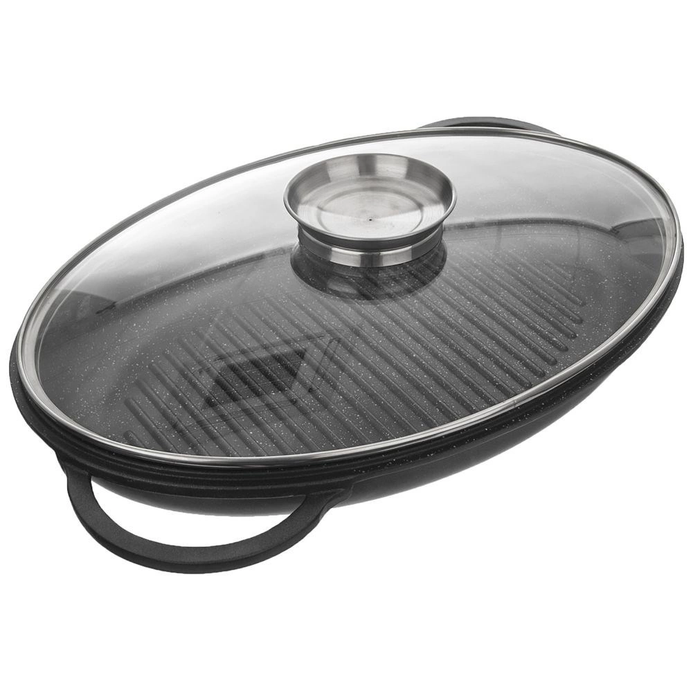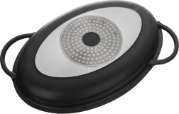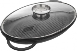Otkrijte univerzalnu grill tavu koja objedinjuje funkciju tave i pekača. Ovalni oblik s povišenim rebrima osigurava efektan trag rešetke i odvod viška masnoće, a stakleni poklopac s integriranim dozatorom omogućuje dolijevanje vina ili temeljca bez podizanja poklopca. Idealna za meso, ribu i povrće, za prženje, pirjanje i pečenje.