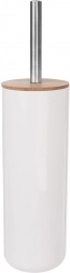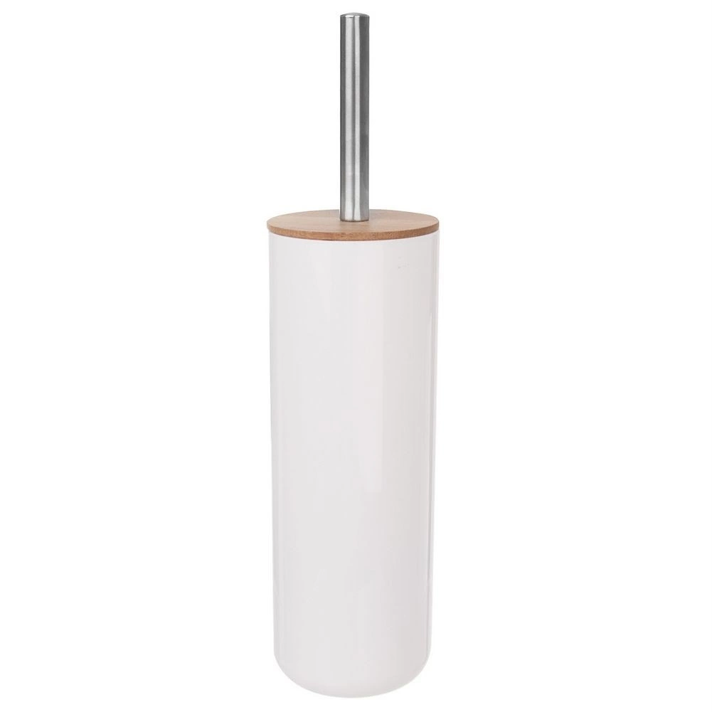 Minimalistički bijeli stalak s prirodnim bambusovim poklopcem elegantno skriva četku i održava vašu kupaonicu vizualno čistom.