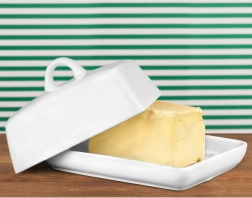 Univerzalan dizajn izvrsno pristaje svakom stolnom setu, a površina s sjajnom glazurom je jednostavna za održavanje. Maslenka je izrađena od zdravstveno neškodljive keramike i prikladna je za perilicu posuđa, čime štedi vrijeme i trud.