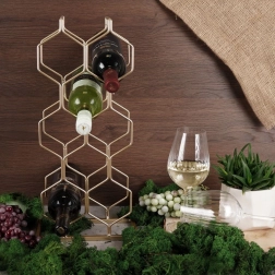 Otkrijte praktično i dekorativno rješenje za pohranu vina. Ovaj zlatni metalni stalak sa saćastom heksagonalnom strukturom sigurno smješta do 8 boca, održava vlažnost čepa i pritom štedi prostor. Čvrst je, stabilan i lijepo nadopunjuje moderan i klasičan interijer.