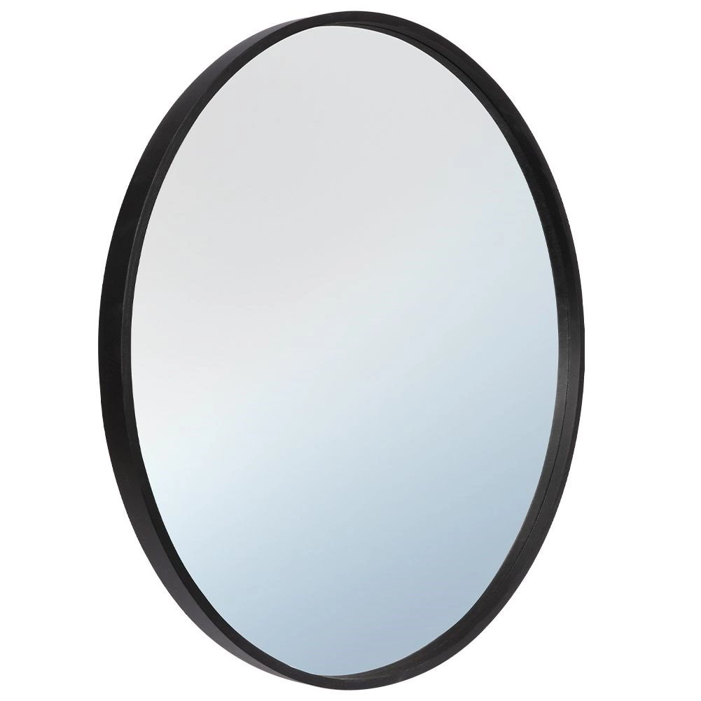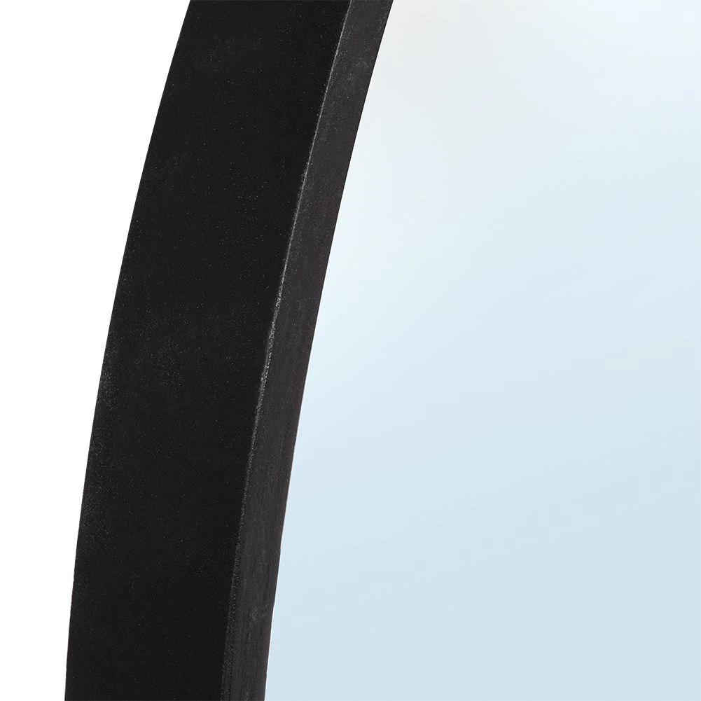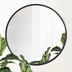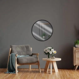 Okrugli oblik i tanak crni okvir stvaraju moderan akcent koji vizualno povećava i posvjetljuje prostoriju.