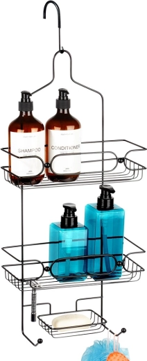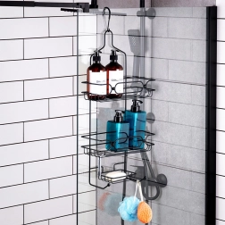Ova viseća polica za tuš dizajnirana je za maksimalnu udobnost i urednost. Zahvaljujući univerzalnom vješanju lako je postavite na tuš-glavu, staklenu pregradu ili običnu kuku – bez potrebe za bušenjem. Otvorena žičana konstrukcija potiče brzo otjecanje vode i higijensko sušenje.