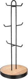 Elegantni kuhinjski stalak za šalice i šalice visine 40 cm štedi prostor na radnoj plohi i održava red. Kombinira čvrstu crnu metalnu konstrukciju sa stabilnom drvenom bazom, nudi 6 kukica za pregledno vješanje i zahvaljujući praktičnoj ručki lako se prenosi. Idealan za moderne i klasične kuhinje u industrijskom stilu.