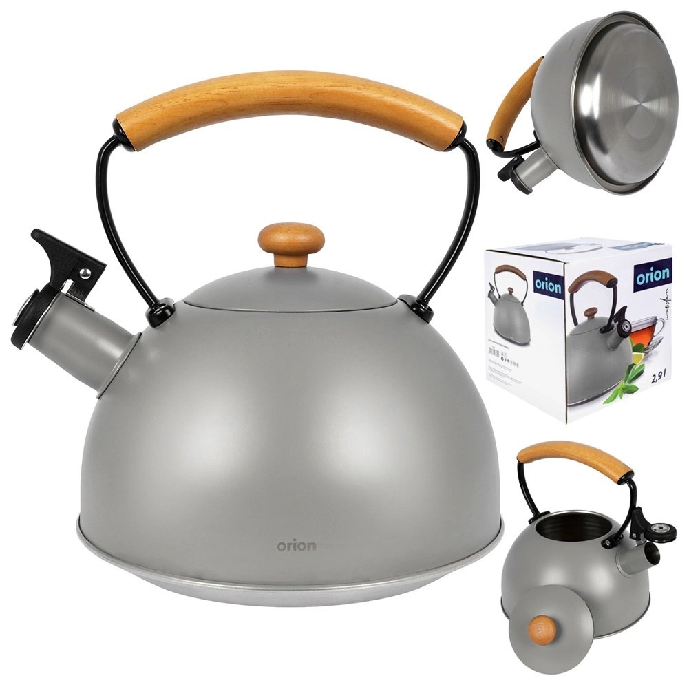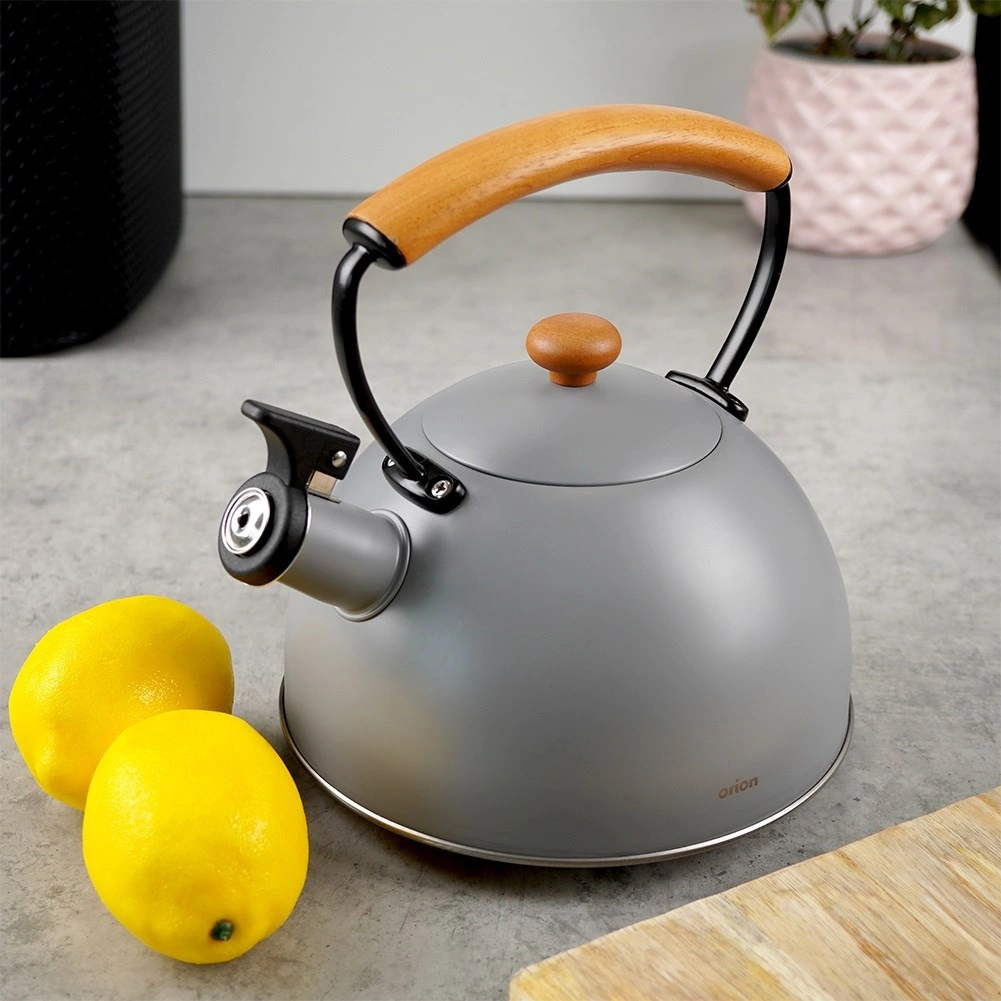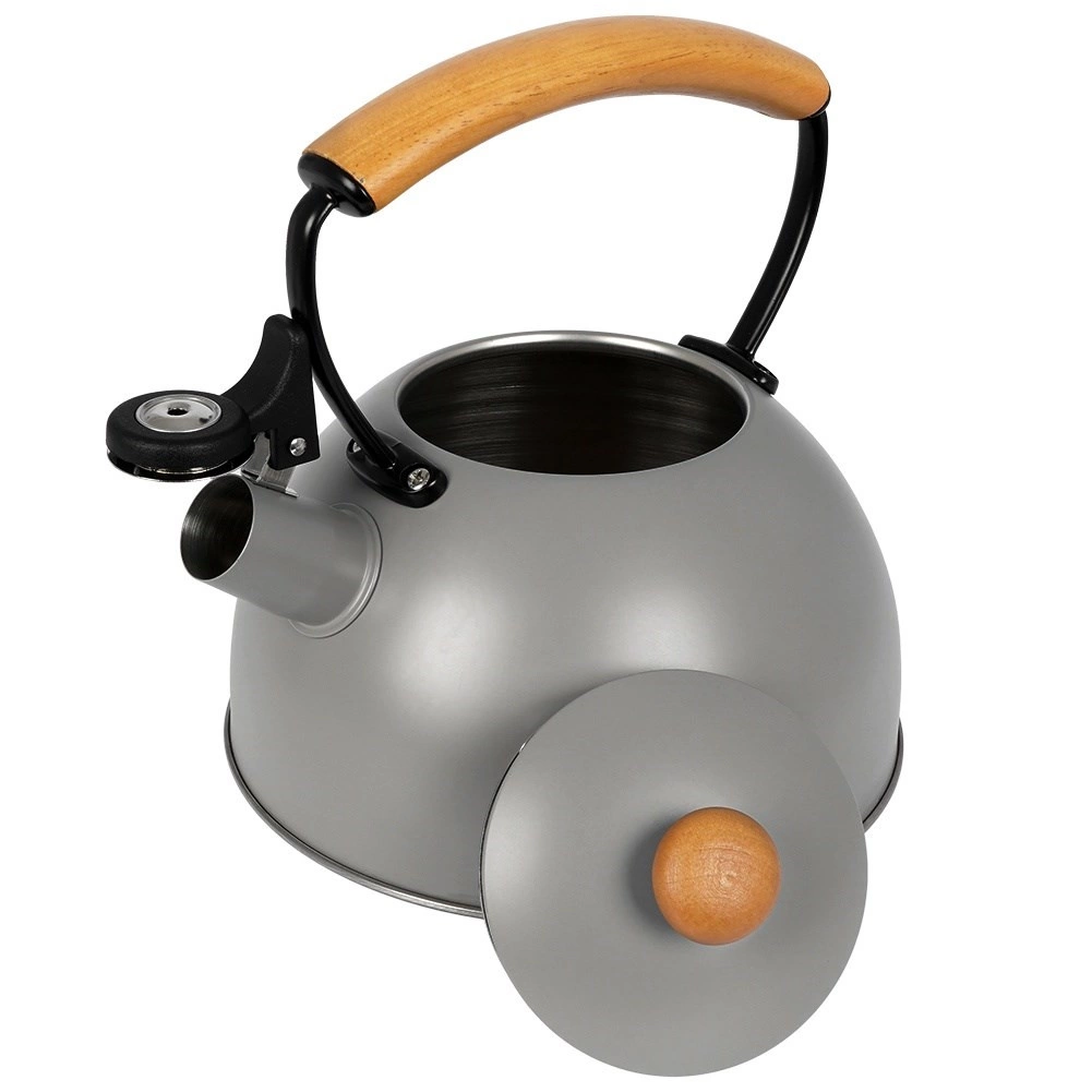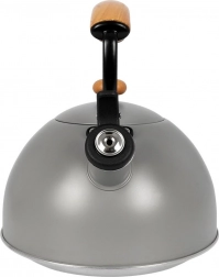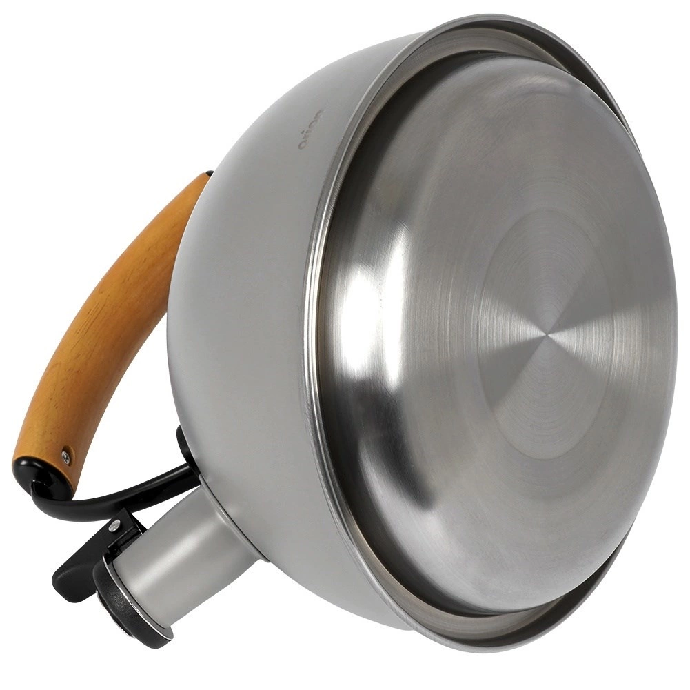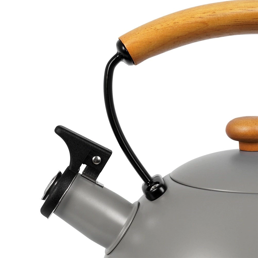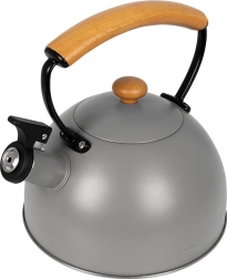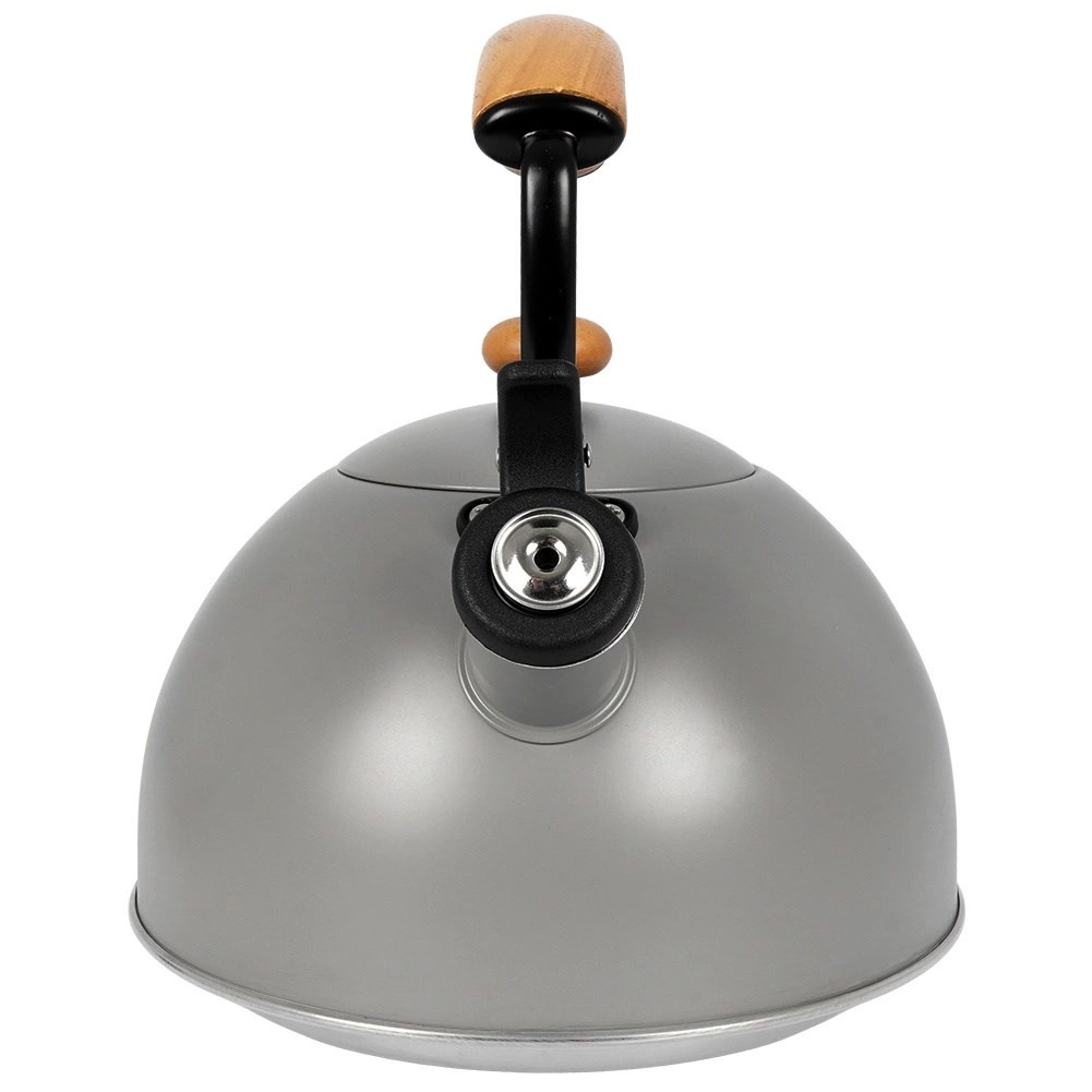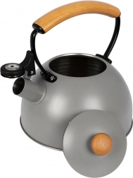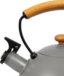 Vrhunska čajnica od nehrđajućeg čelika u sivom izvedbi s drvenim detaljima od kaučukovca idealna je za brzo zagrijavanje vode za kavu, čaj i bilje. Zahvaljujući ergonomskoj drvenoj ručki i preklopnoj pištaljci rukovanje je sigurno i udobno. Čajnica je energetski učinkovita, a nehrđajući čelik ne mijenja okus vode.