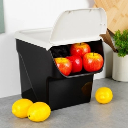 Održavajte kuhinju i ostavu savršeno organiziranima. Izdržljivi spremnik s preklopnom prednjom klapnom olakšava brzo dopunjavanje i uzimanje sadržaja bez potrebe za skidanjem cijelog poklopca. Zahvaljujući bezvremenskoj kombinaciji crne posude i svijetlosivog poklopca uklopit će se u svaki interijer.