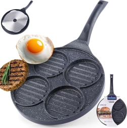 Četiri kružna kalupa (cca 10 cm) drže burgere, jaja ili palačinke odvojeno, pa možete pripremiti više porcija odjednom bez miješanja okusa i oblika.