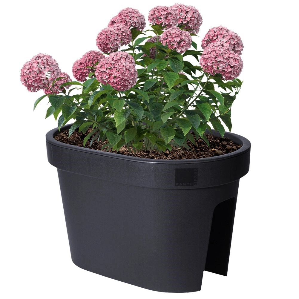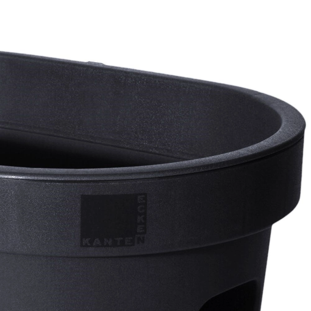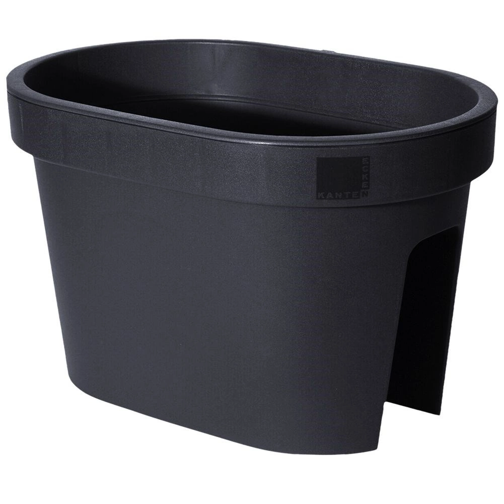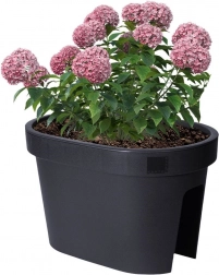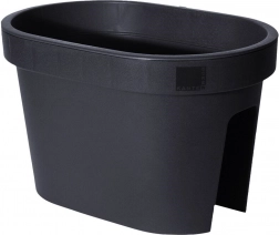 Viseća žardinjera sa središnjim izrezom za sigurno postavljanje na ogradu omogućuje uzgoj biljaka i na malom prostoru. Moderna crna izvedba istaknut će se na balkonu, terasi i u vrtu te dati sadnji čist, elegantan izgled.