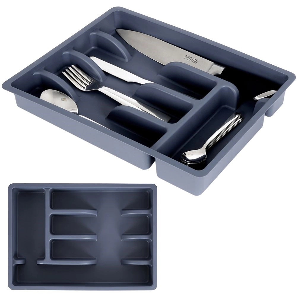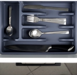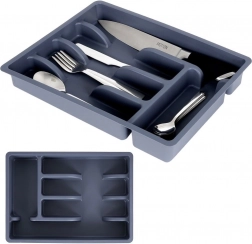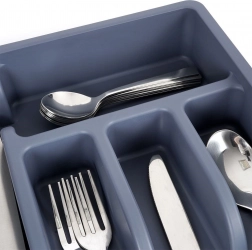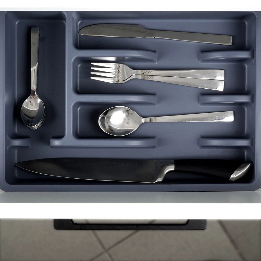 Organizator je izrađen od kvalitetne, izdržljive plastike u modernoj sivoj boji, pa se lako održava i dugotrajno traje. Unutarnje pregrade sprječavaju pomicanje pribora pri otvaranju ladice, što povećava udobnost pri svakodnevnoj uporabi.