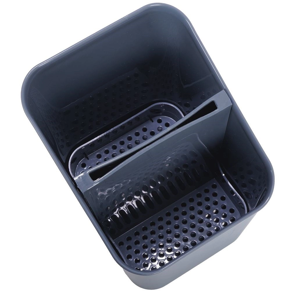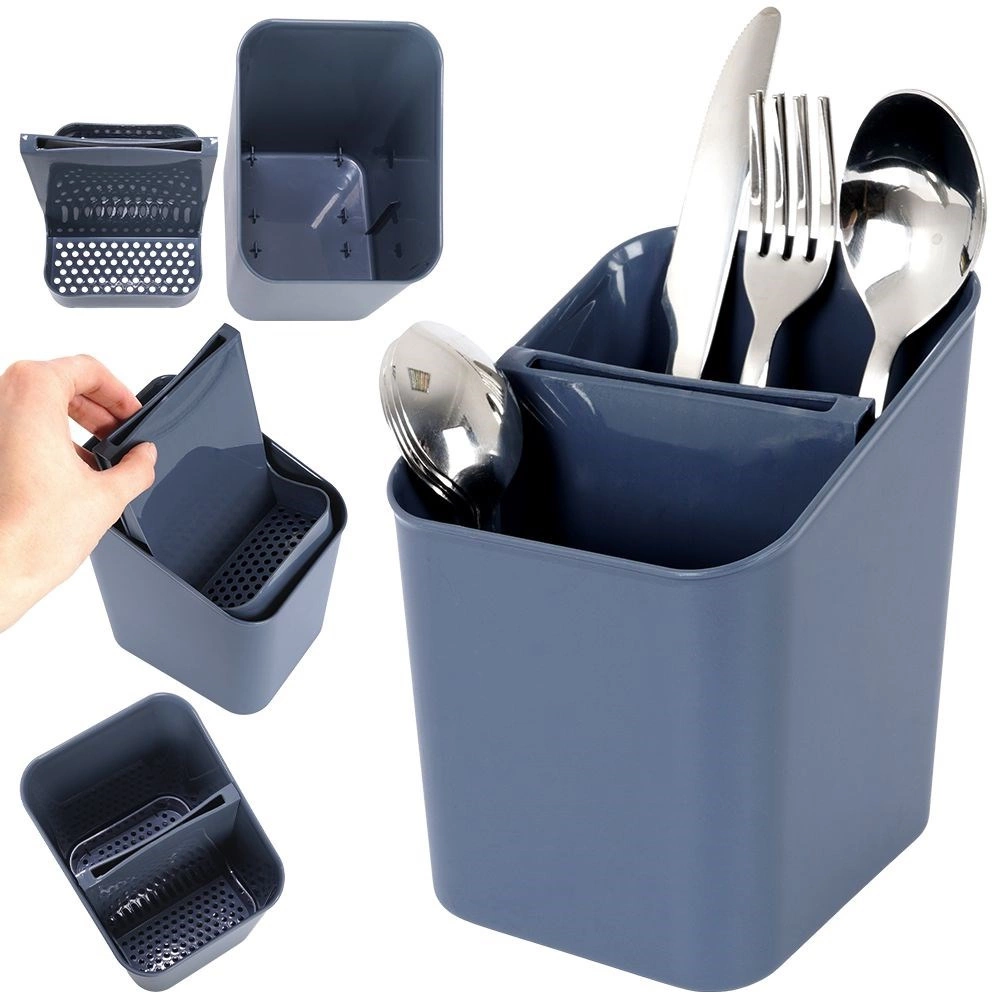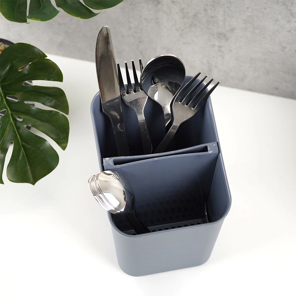 Održavajte kuhinjski sudoper i radnu površinu urednima. Ovaj sivi ocjeđivač za pribor kombinira izdržljivu izvedbu od kvalitetne plastike s pametnim unutarnjim rasporedom. Izvadivi separator stvara dvije praktične zone, a zahvaljujući odvodnim otvorima voda otječe, pa pribor ne stoji u vodi i brže se suši.