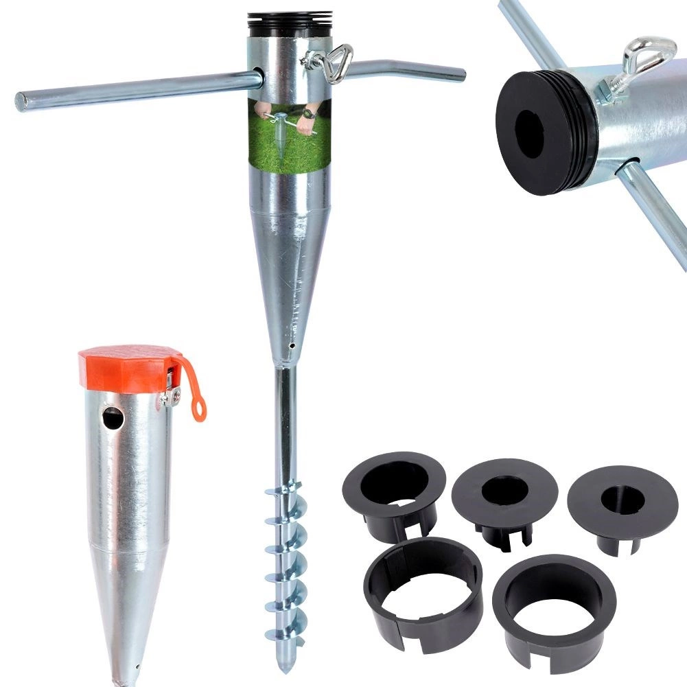 Integrirani svrdlasti vrh i bočne ručke omogućuju jednostavno i brzo uvijanje u tlo, pijesak ili travnjak – dovoljno je okrenuti i gotovo.