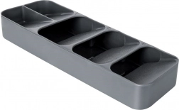 Izdržljiva izvedba od kvalitetne plastike u elegantnoj sivoj boji osigurava jednostavno čišćenje i dugotrajnost. Organizator je idealan za odlaganje žlica, vilica, noževa te malih žličica i vilica, pri čemu svaki komad ima svoje mjesto.