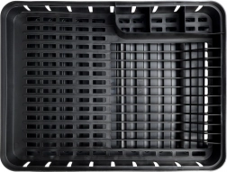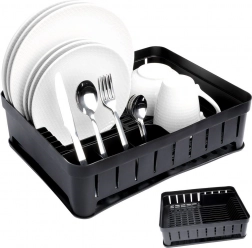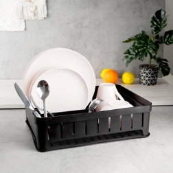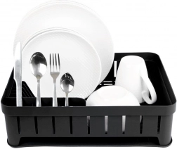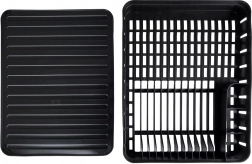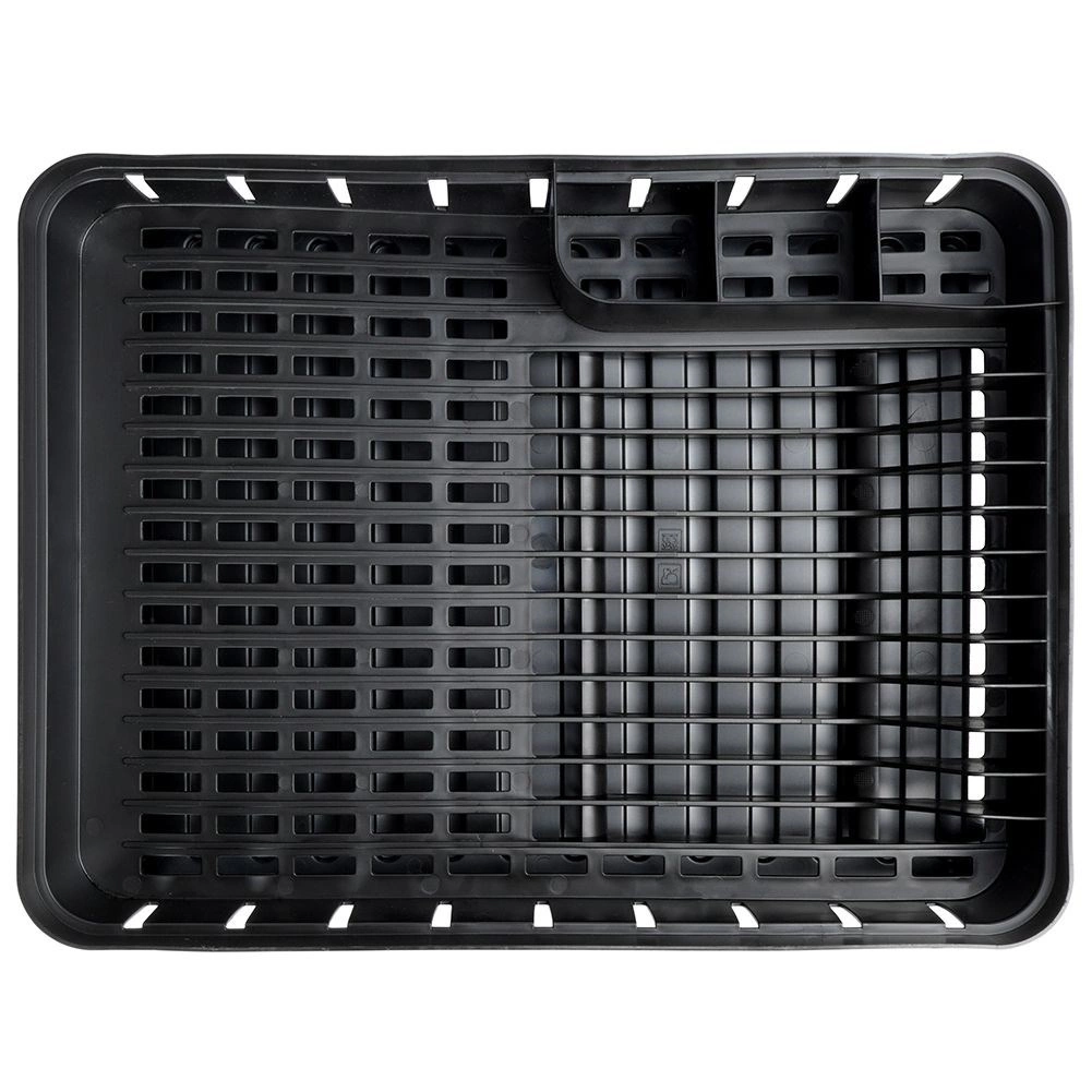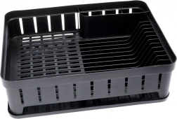 Elegantna i kompaktna ocjedna posuda za posuđe nezamjenjiv je pomagač u svakoj kuhinji. Minimalistički dizajn i univerzalno crno izvedenje savršeno se uklapaju u klasične, moderne i industrijske interijere. Kvalitetna plastična izrada osigurava čvrstoću i dug vijek trajanja, dok izvadiva gumena posuda hvata otkanu vodu i održava radnu plohu suhom.