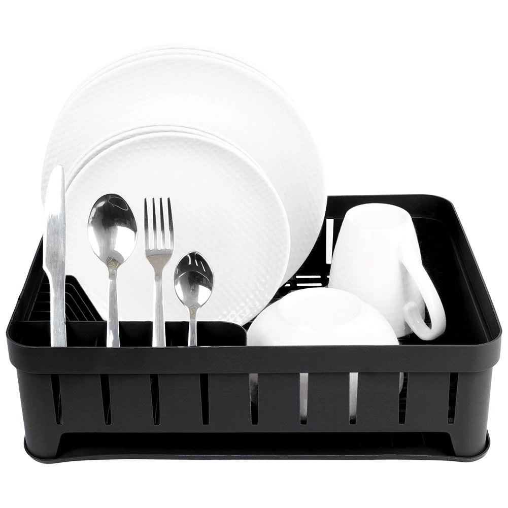 Čvrsti utori drže tanjure u uspravnom položaju, dok je bočni dio idealan za šalice i čaše.