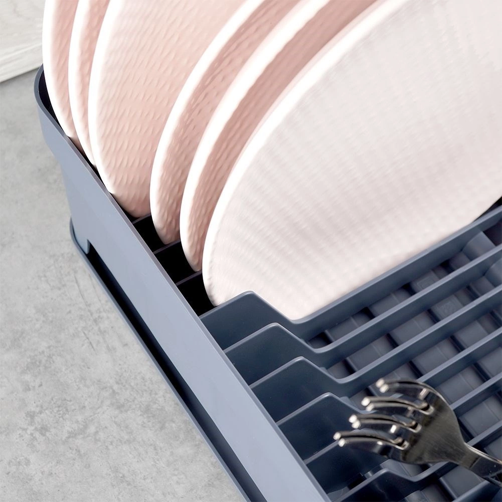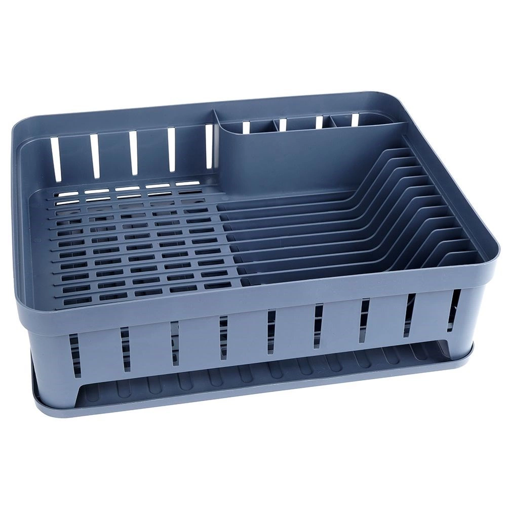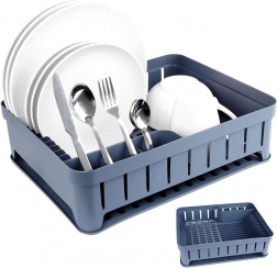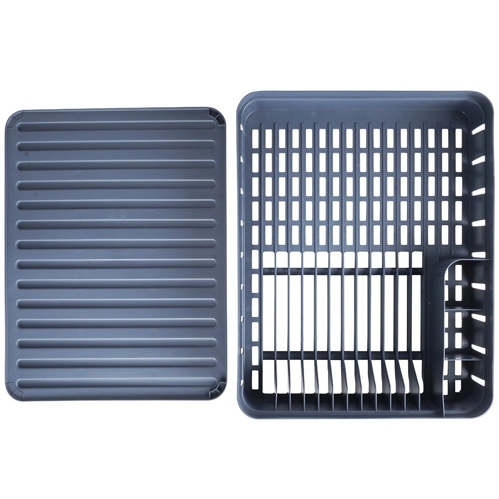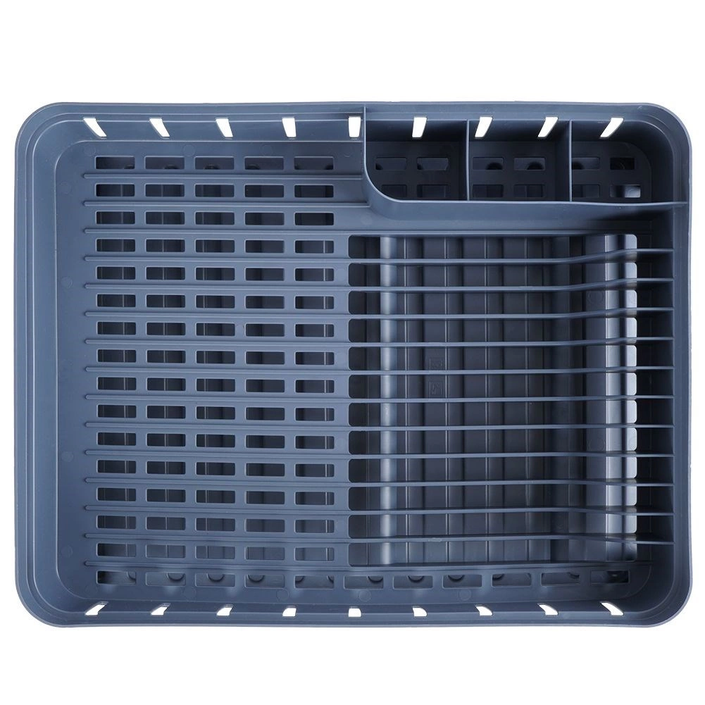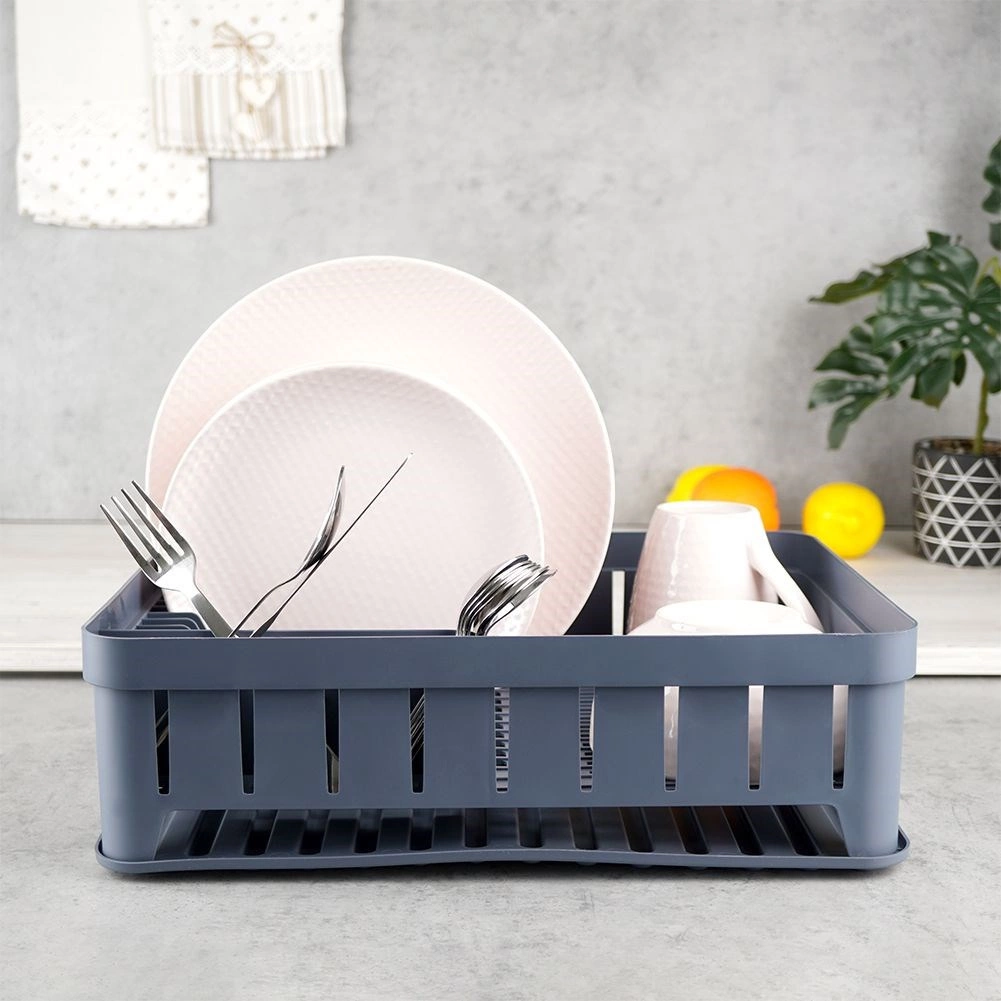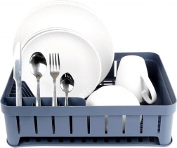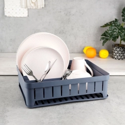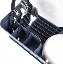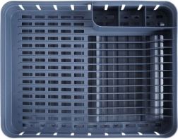 Sivi ocjeđivač posuđa dizajniran je za udobno i higijensko sušenje opranih tanjura, zdjela, šalica i pribora za jelo. Kapacitet do 11 tanjura, odvojeni prostor za šalice i trodijelna kutija za pribor održavaju vašu kuhinju preglednom i suhom. Izvadivi gumeni pladanj za ocjeđivanje pouzdano hvata višak vode.