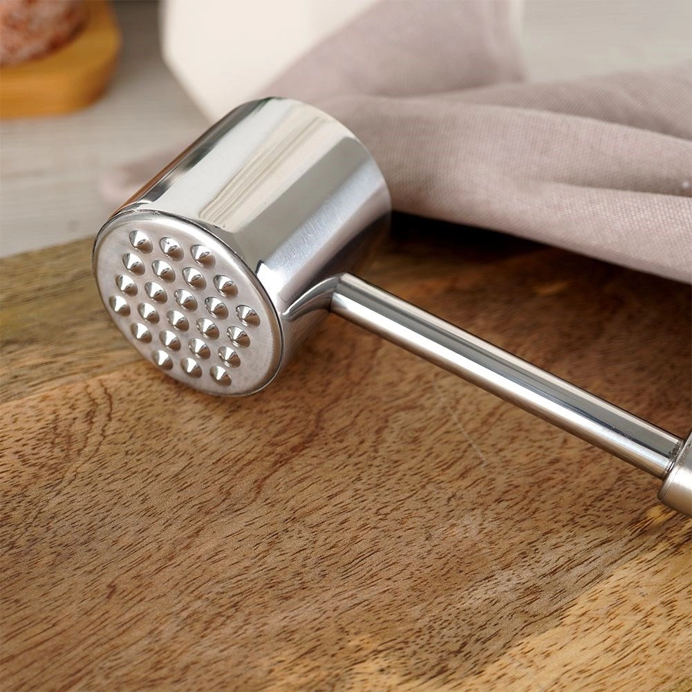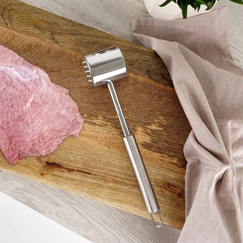 Visoko izdržljiv nehrđajući čelik osigurava dug vijek trajanja, higijenu i lako čišćenje u perilici. Tenderizer je prikladan za govedinu, svinjetinu, perad i ribu, a poslužit će i za drobljenje orašastih plodova ili leda. Oko na kraju ručke omogućuje praktično vješanje i pohranu.