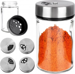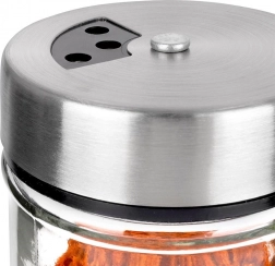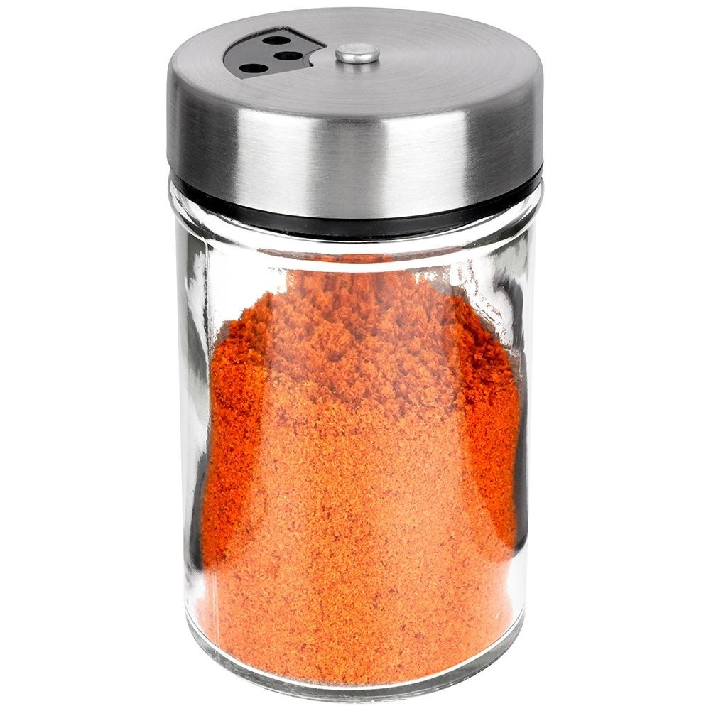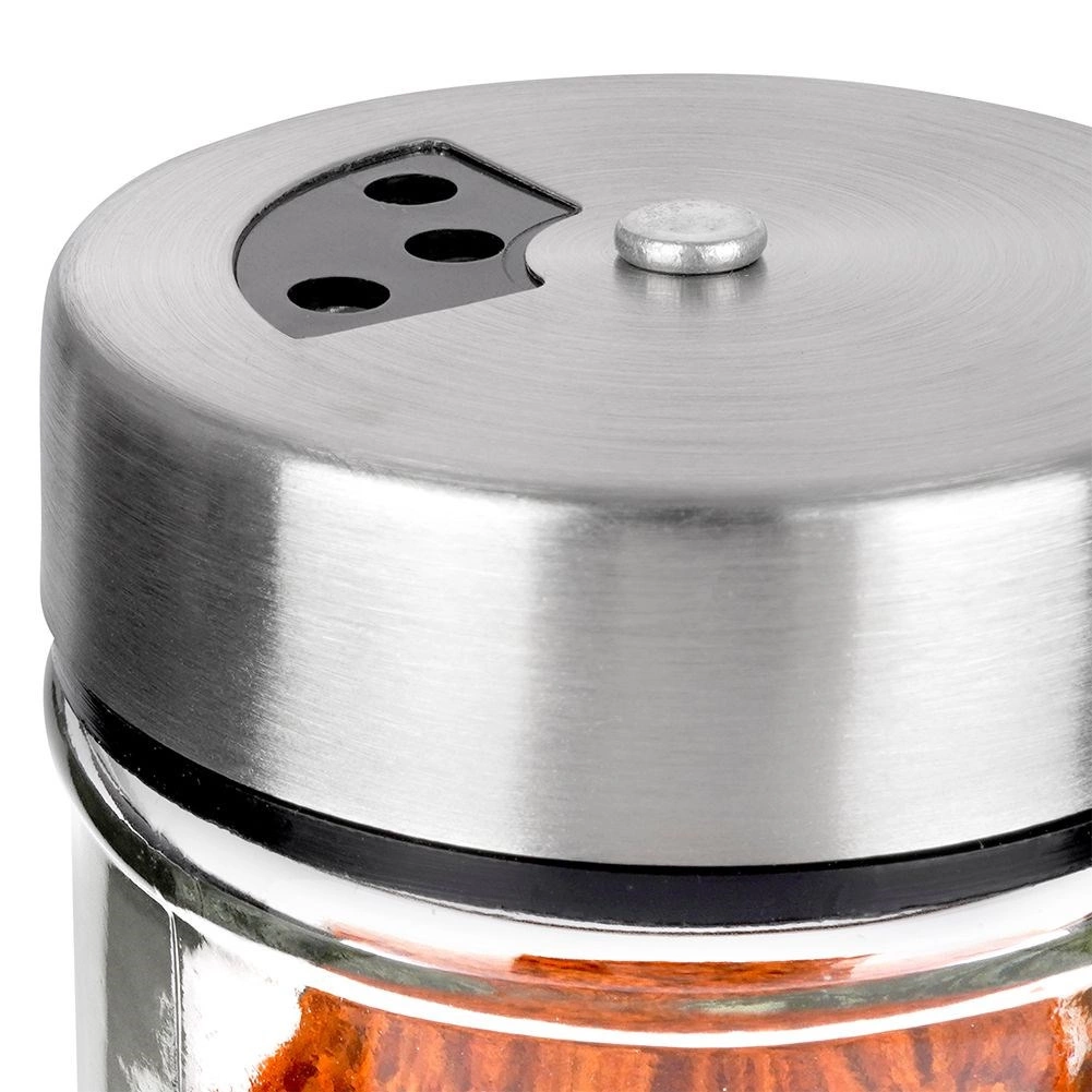 Elegantna posudica od prozirnog stakla s poklopcem od nehrđajućeg čelika i plastičnim dozatorom idealna je za svakodnevnu upotrebu u kuhinji. Zahvaljujući dvjema veličinama otvora lako prilagodite fino ili grublje posipanje i uvijek naspete točno koliko trebate. Mehanizam zatvaranja održava začine dulje mirisnima i svježima.