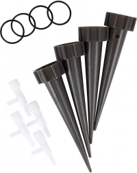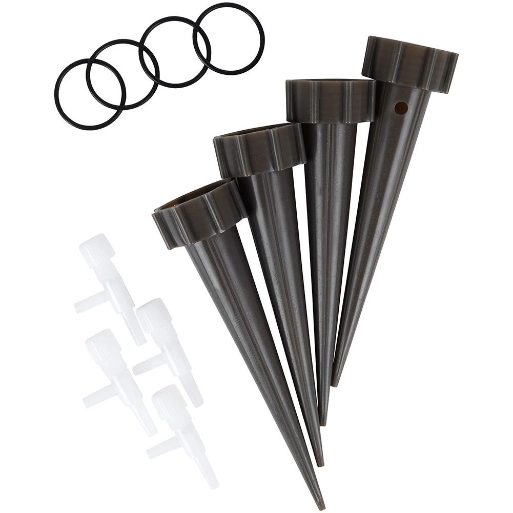 Svaki nastavak ima jednostavnu instalaciju – jednostavno ga zabodete u zemlju pokraj biljke i postavite okrenutu bocu. Pomoću ventila precizno podešavate protok prema veličini biljke i potrebama zalijevanja. Set od 4 komada odličan je za dom, balkon, terasu i vrt.