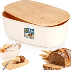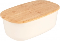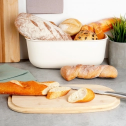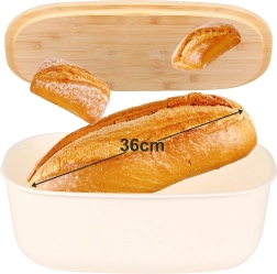 Stilizirani spremnik za kruh u krem boji spaja moderan dizajn i prirodni bambus. Tijelo je izrađeno od izdržljive plastike bez BPA, poklopac od bambusova drva služi kao praktična daska za rezanje. Zahvaljujući velikodušnim dimenzijama 39 × 23,5 × 15,5 cm udobno ćete pohraniti kruh, bagete i peciva.