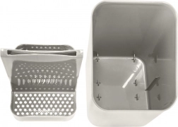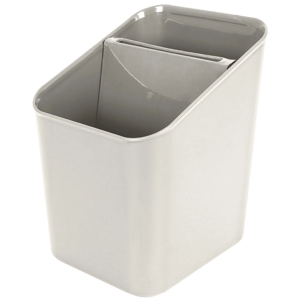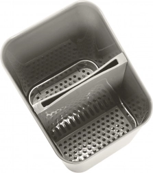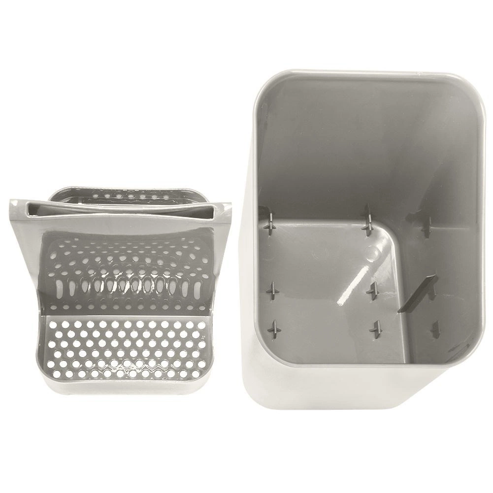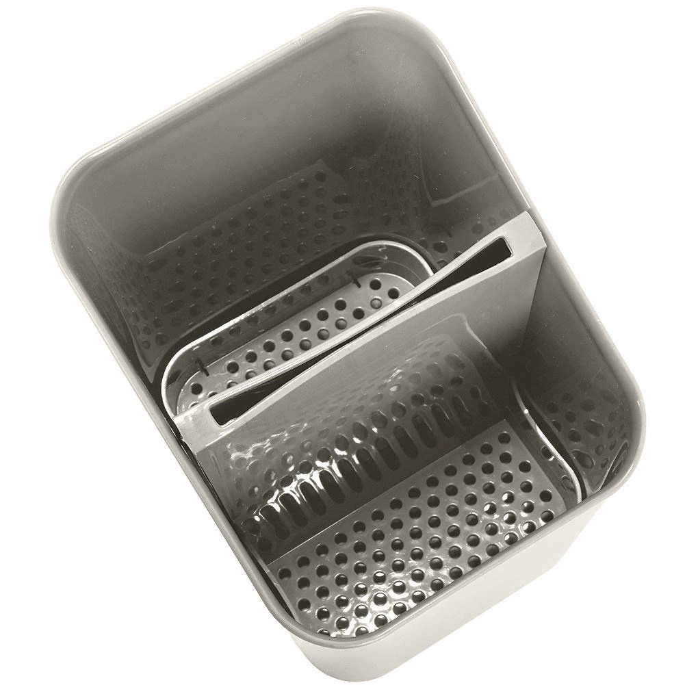 Održavajte red kod sudopera i na radnoj plohi. Ovaj ocjeđivač za pribor od kvalitetne plastike u modernoj sivoj boji spaja elegantan izgled i maksimalnu funkcionalnost. Uklonjivi umetnuti dio stvara dvije odvojene sekcije, a zahvaljujući perforiranom dnu omogućuje otjecanje vode kako pribor ne bi stajao u vlazi.