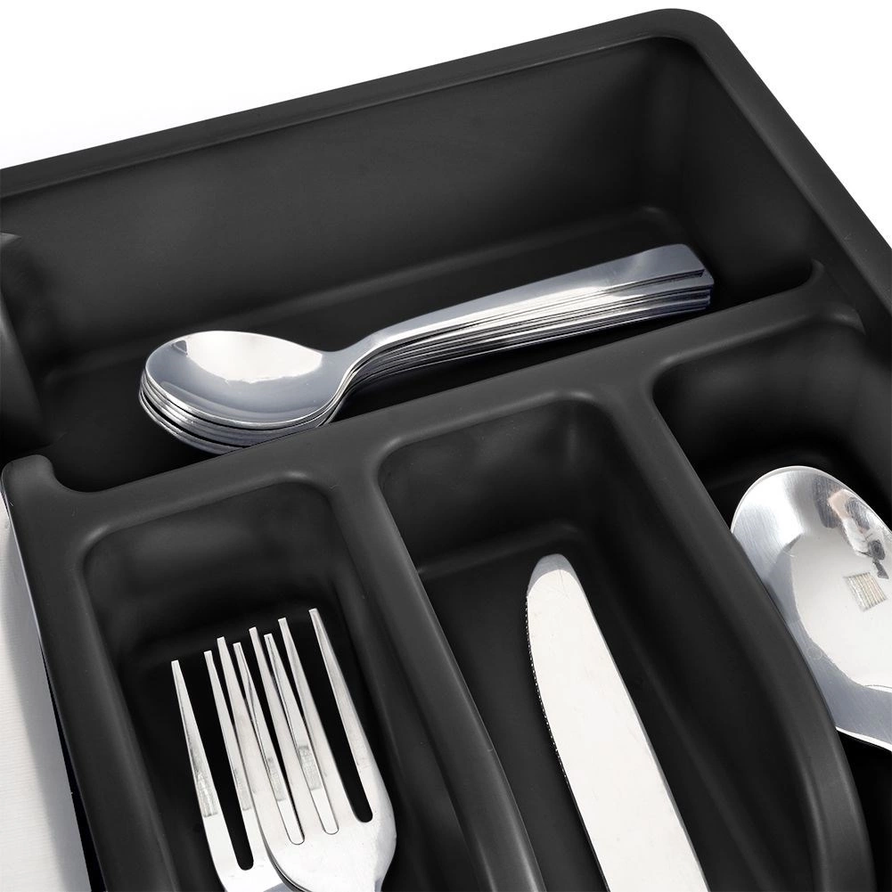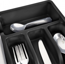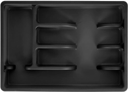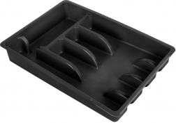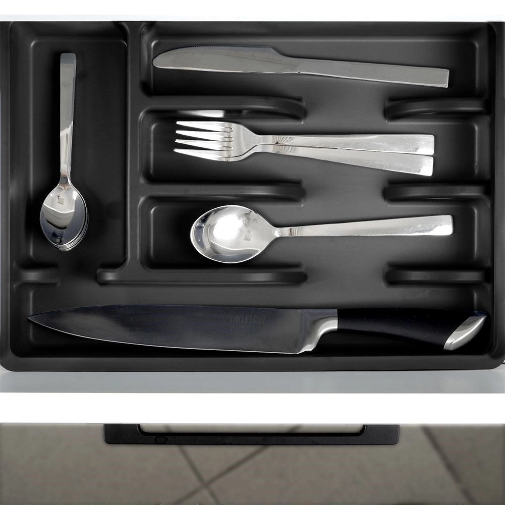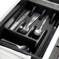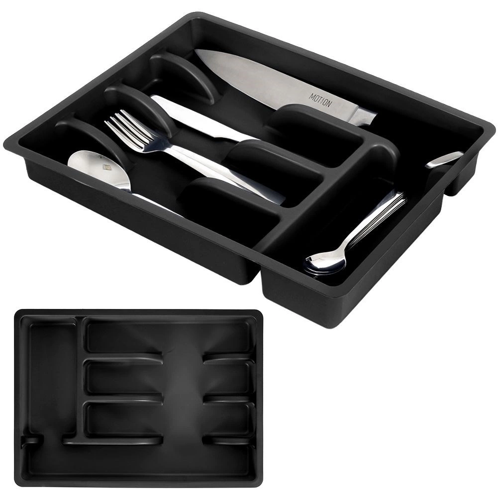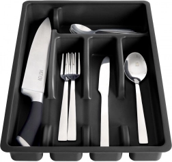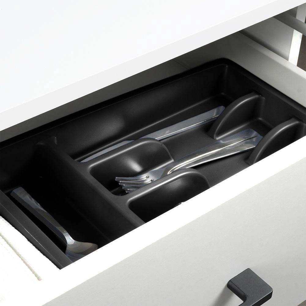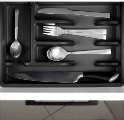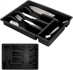 Izrađen od kvalitetne, izdržljive plastike u elegantnoj crnoj boji. Materijal je gladak, higijenski i lako se čisti – dovoljna je vlažna krpa ili perilica posuđa. Zahvaljujući univerzalnim dimenzijama pristaje u većinu ladica i trenutačno pretvara nered u pregledno spremište.