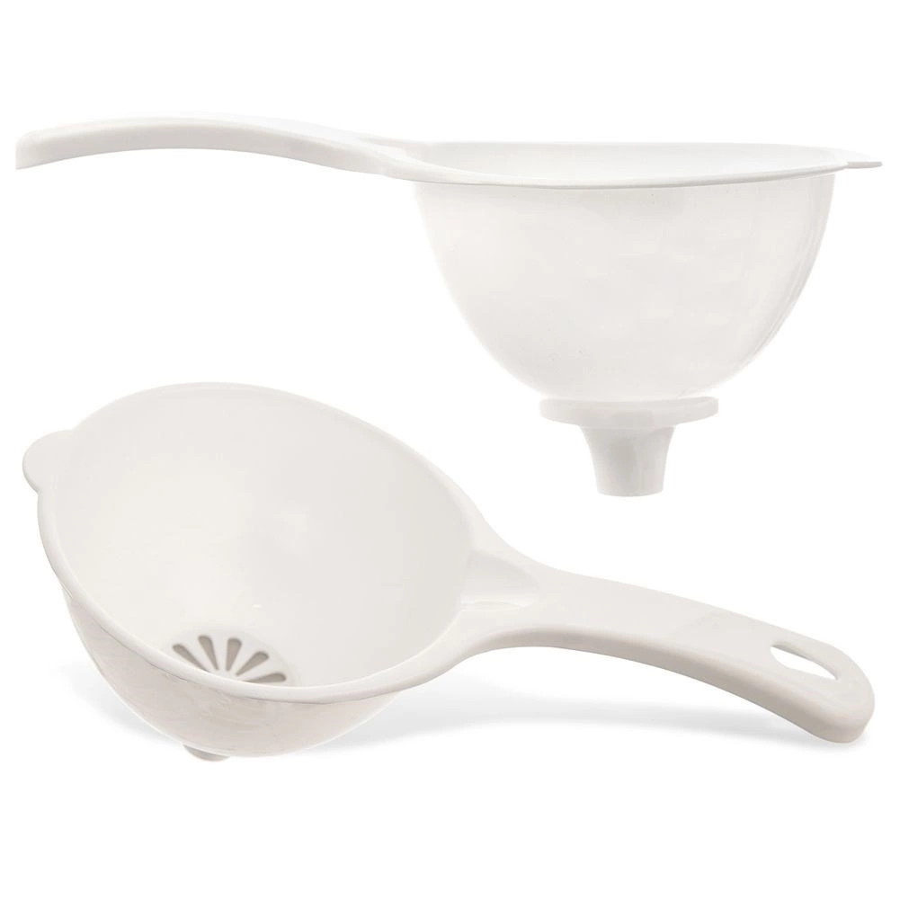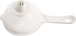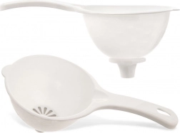 Univerzalni lijevak sa sitom u bijeloj boji olakšava pretakanje napitaka i finih sastojaka bez prolijevanja. Integrirano sito zadržava komadiće voća, talog ili sitne čestice, tako da u bocu ili čašu teče samo čista tekućina. Zahvaljujući čvrstoj dršci uvijek imate sigurnost i stabilnost pri nalijevanju.