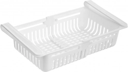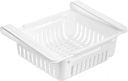 Praktična viseća košarica za hladnjak, koja se širi od 21 do 28,7 cm, pomaže vam pametno iskoristiti prostor ispod police. Laka je, izdržljiva i jednostavno se montira bez alata. Zahvaljujući prozračnoj konstrukciji namirnice dulje ostaju svježe, a sve vam je pregledno pri ruci. Podesiva duljina, jednostavna ugradnja ispod police, čvrsta izvedba i ventilacijski otvori za bolju cirkulaciju zraka.
