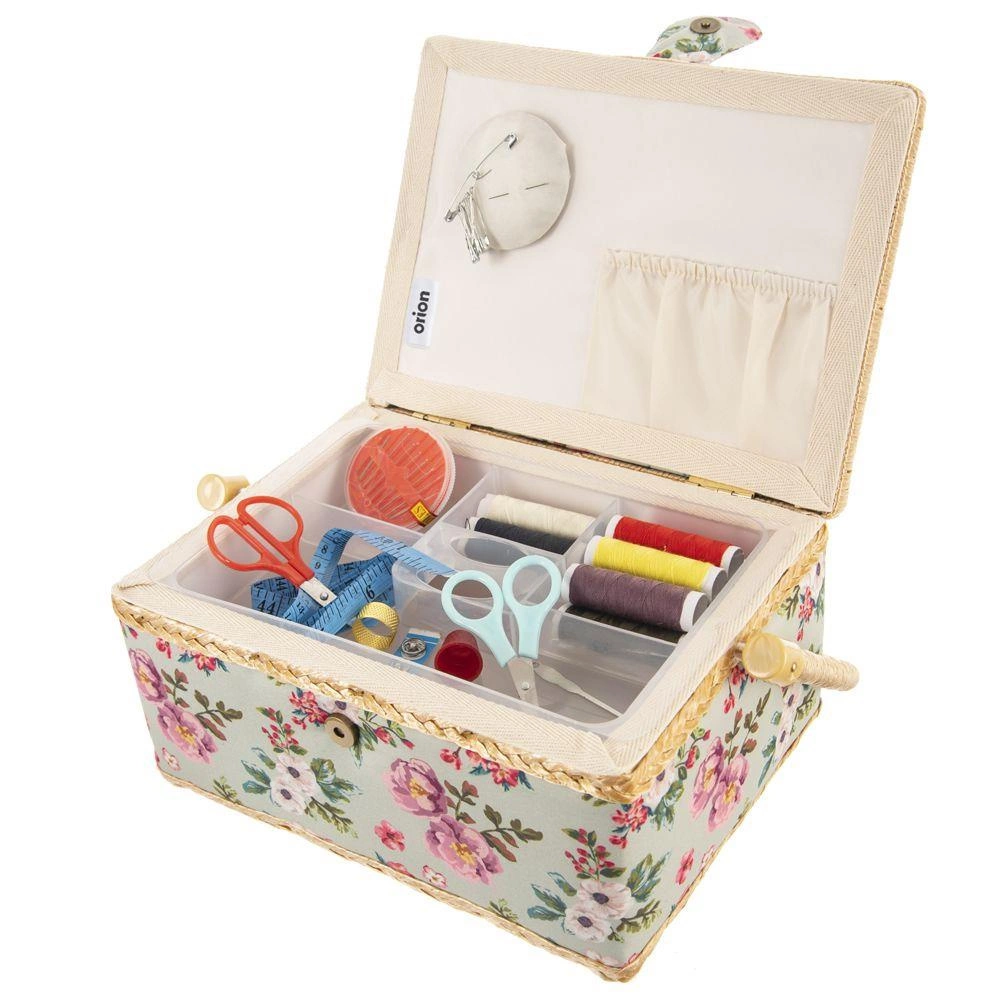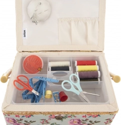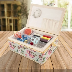 Ova stilska kutija za šivanje idealno je rješenje za svakoga tko želi šivaće potrepštine uvijek imati pri ruci i savršeno organizirane. Zahvaljujući cvjetnom motivu i čvrstoj izradi djeluje dekorativno, a istovremeno je maksimalno funkcionalna. Prikladna je i kao organizator za bižuteriju i sitne kreativne potrepštine.