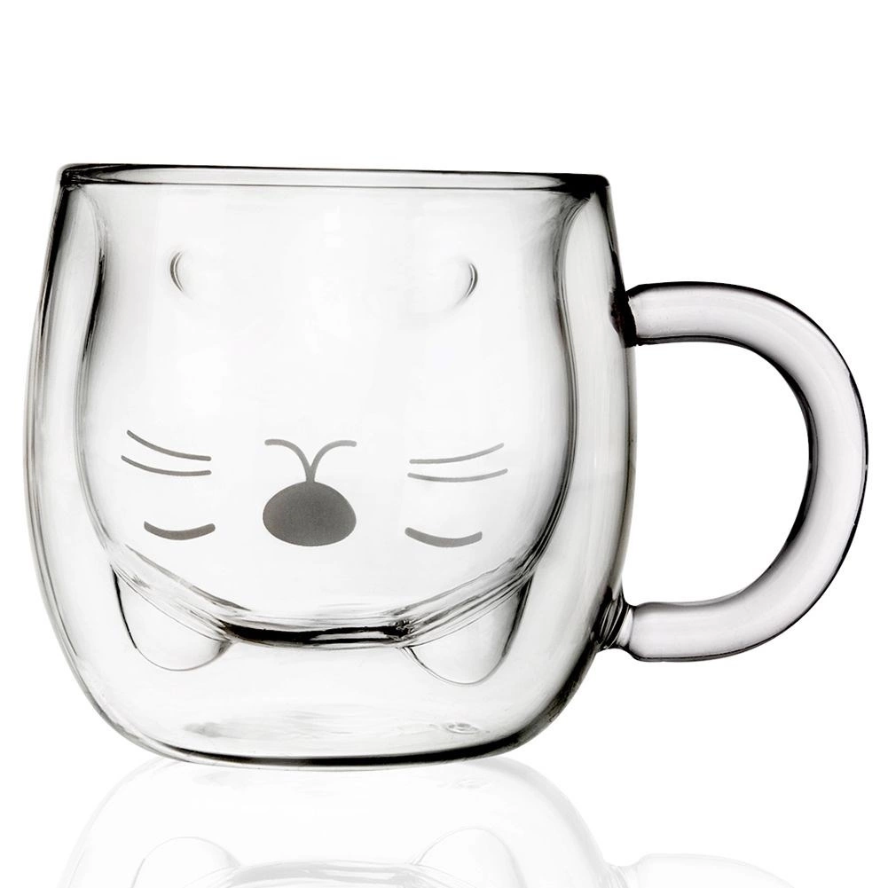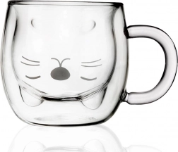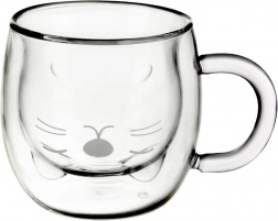 Uživajte u kavi ili kakau u preslatkoj čaši s mačjim motivom koja zahvaljujući dvostrukoj stijenki duže čuva napitak toplim ili hladnim, dok vanjska površina ostaje hladnija na dodir. Čaša je izrađena od izdržljivog borosilikatnog stakla, koje bolje podnosi toplinske šokove i lagano je u ruci.