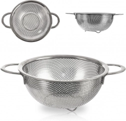 Praktično sito od kvalitetnog nehrđajućeg čelika u elegantnoj srebrnoj izvedbi postat će nezamjenjiv pomoćnik u svakoj kuhinji. Fino perforirana zdjela omogućuje brzo i ravnomjerno otjecanje vode pri ispiranju voća i povrća ili pri cijeđenju tjestenine, knedli i riže. Dvije bočne ručke osiguravaju siguran hvat i lako prenošenje.