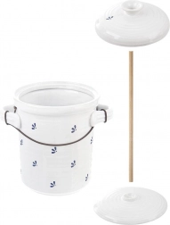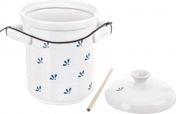 Otkrijte tradicionalan način kućne fermentacije s elegantnom posudom MODROBILA zapremnine 2,5 litre. Kvalitetna glazirana keramika u bijeloj boji s plavim motivima stvara idealno okruženje za stabilnu fermentaciju bez prodora svjetla. U kompletu su glavni poklopac i unutarnji pritiskivač s trnom i gumicom, koji ravnomjerno pritišće povrće prema dnu.