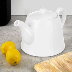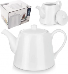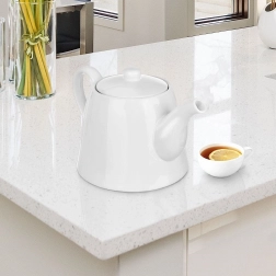 Omiljeni i praktični čajnik od bijelog porculana odlično će upotpuniti vaš servis za objedovanje i omogućiti pripremu veće količine omiljenog napitka za obitelj i goste. Zahvaljujući čvrstoj ručki i ergonomskom izljevku, izlijevanje je glatko i bez kapanja, dok dobro pristajući poklopac pomaže dulje zadržati toplinu napitka.