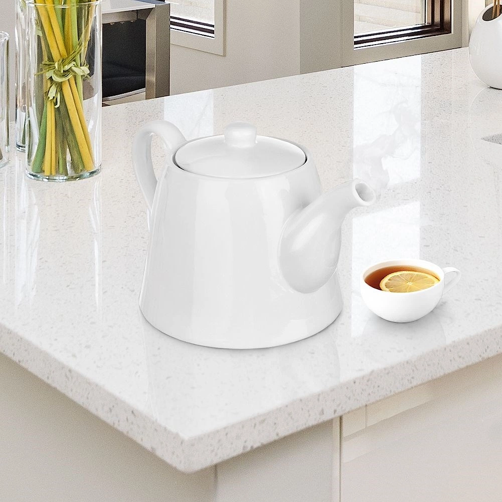 Porculan je higijenski, izdržljiv i lako se čisti, čajnik je prikladan za perilicu posuđa i mikrovalnu pećnicu. Čist bijeli dizajn uklapa se u moderne i klasične interijere i lijepo se slaže s ostalim stolnim posuđem.
