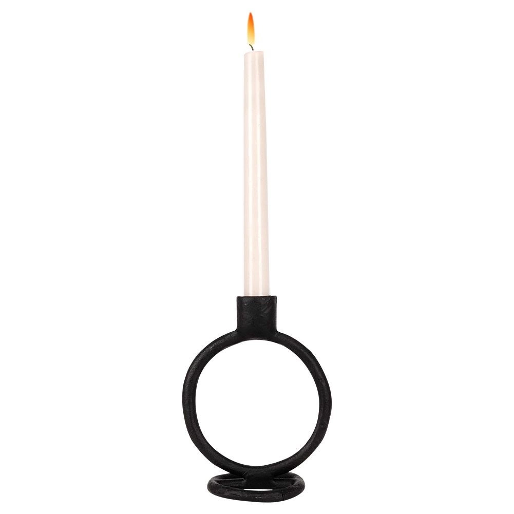 Skulpturalni kružni oblik i mat crna boja čine svijećnjak modernim akcentom koji naglašava karakter interijera bez suvišnih ukrasa.