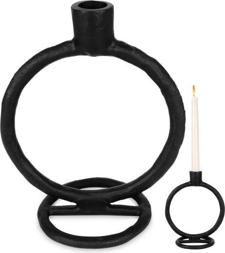Stilský svijećnjak u crnoj boji idealan je za jednu dugu svijeću, a zahvaljujući pažljivoj izradi od aluminija nudi visoku izdržljivost i sigurnu upotrebu. Njegova prozračna kružna silueta djeluje kao dekorativni element i unosi ugodnu rasvjetu u svaki interijer.