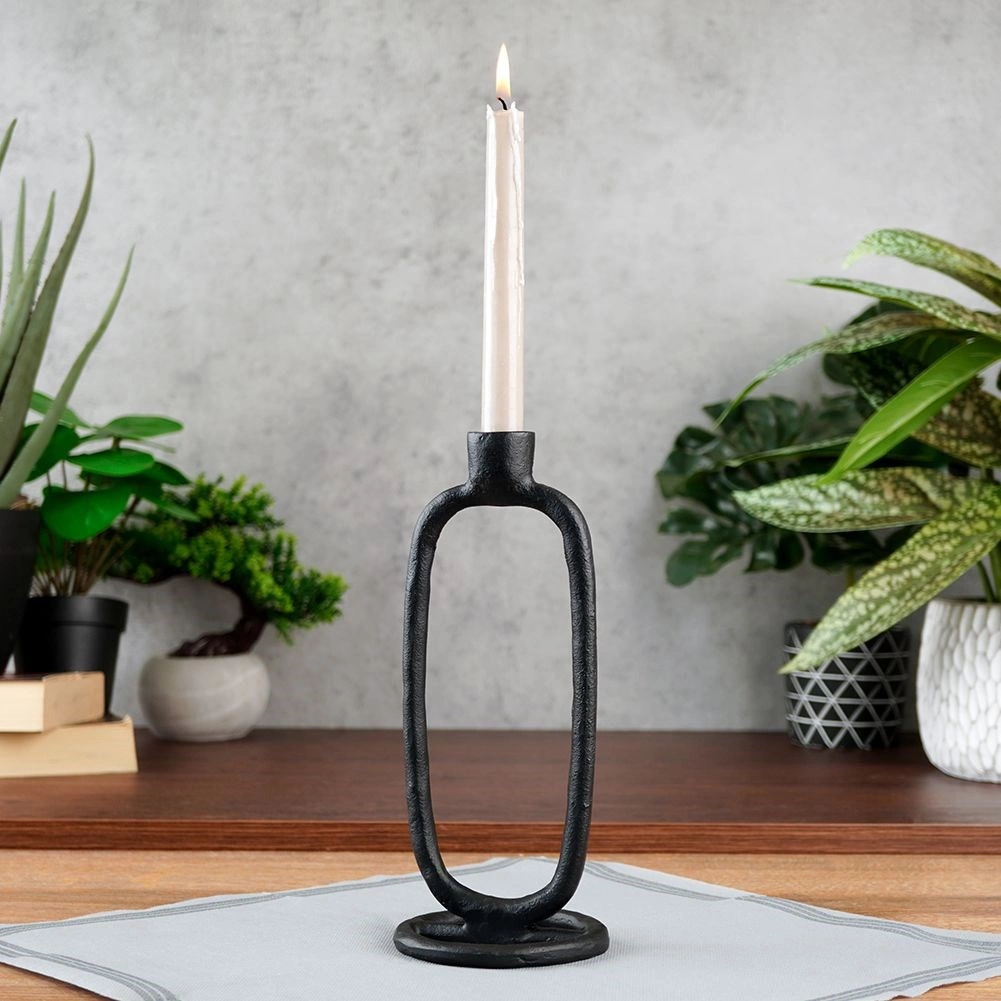 Otvoreni ovalni okvir sa vitkim držačem za svijeću unosi u prostor moderan, prozračan akcent bez suvišnih detalja.