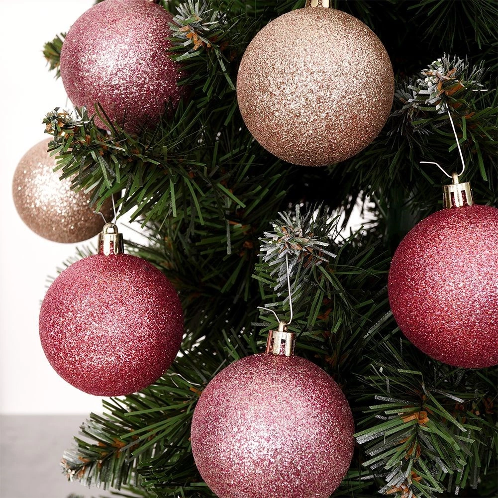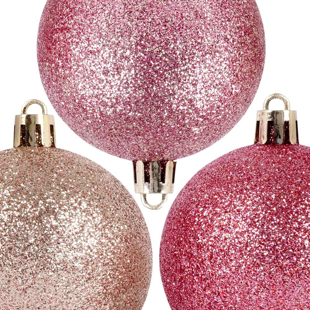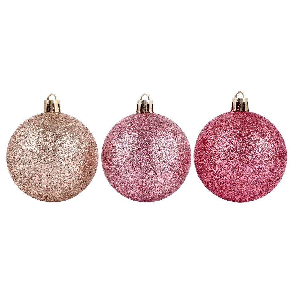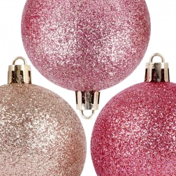 Set kombinira tri ružičasta tona u gliter izvedbi koji božićnom drvcu daju dubinu i elegantan šarm.