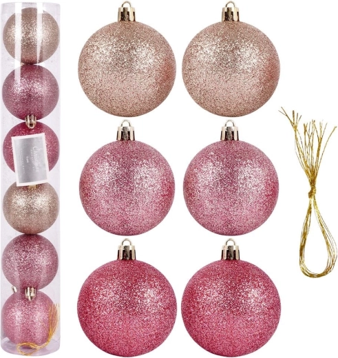 Ovaj set od 6 nerazbitnih kuglica u ružičastim tonovima idealan je za modernu i tradicionalnu božićnu dekoraciju. Sjajna površina prekrasno reflektira svjetlo, zahvaljujući čemu vaše drvce i blagdanski aranžmani dobivaju jedinstven, blistav efekt. Kuglice su lagane, sigurne i pogodne za domove s djecom i ljubimcima.