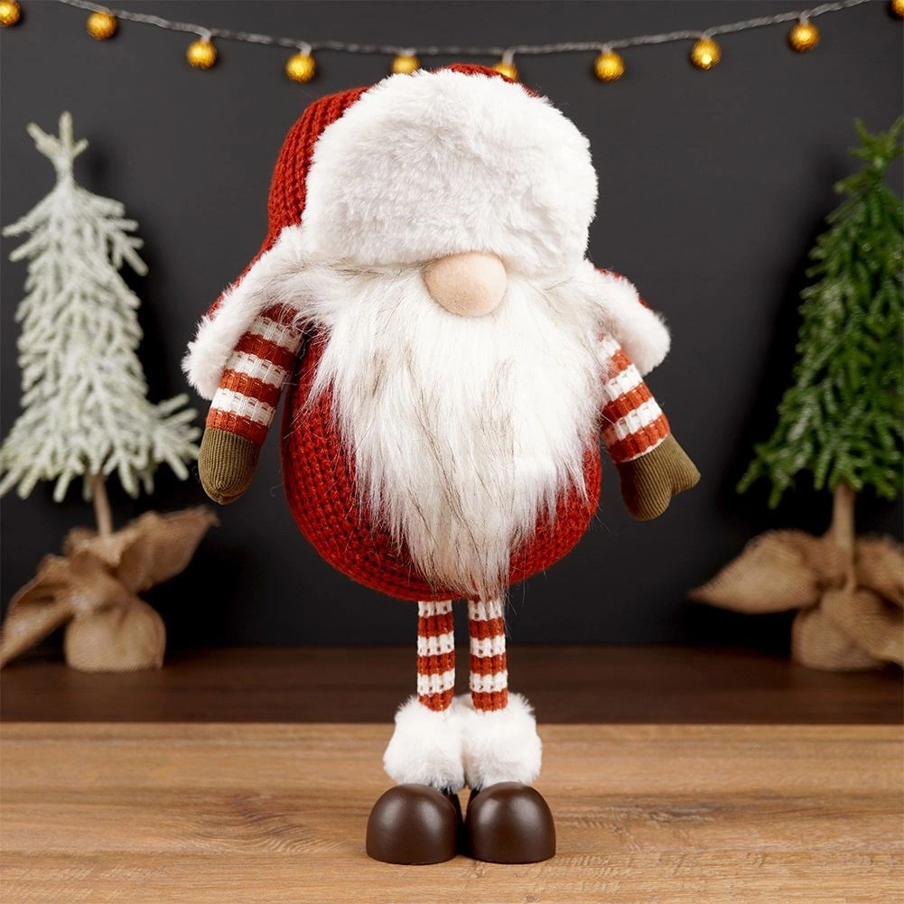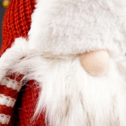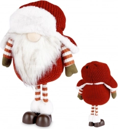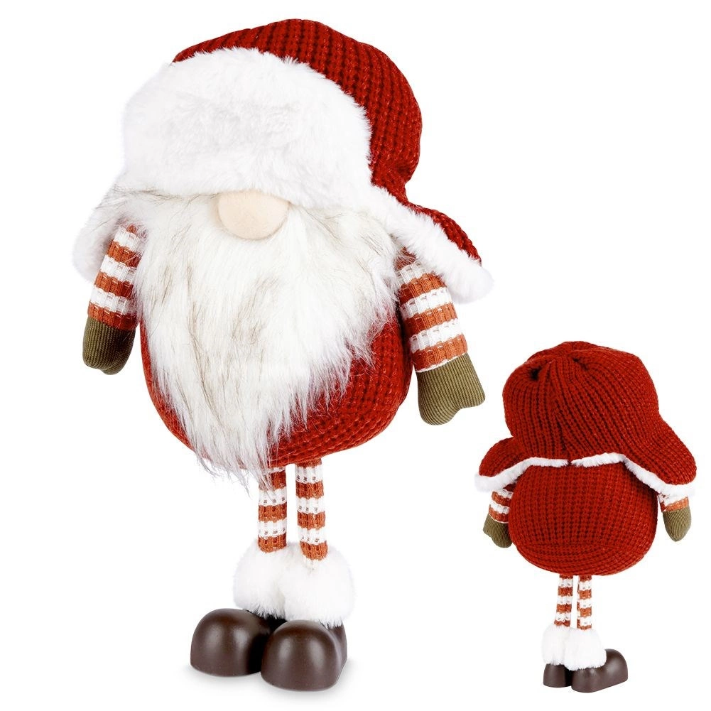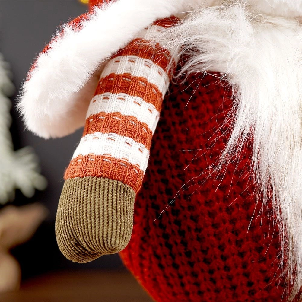 Crveni pleteni odjevni predmet, krzneni rub i bujna bijela brada daju dekoraciji topao, tradicionalan božićni ugođaj koji se uklapa u svaki interijer.