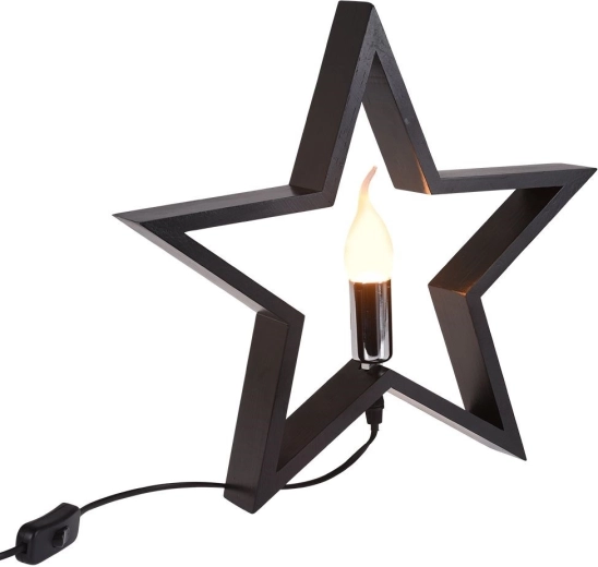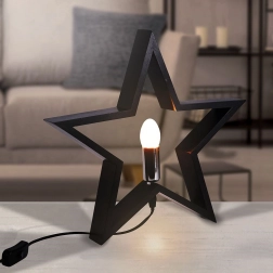 Ova dekorativna stolna lampa u obliku zvijezde unosi u interijer ugodnu rasvjetu i moderan naglasak. Crna drvena izvedba djeluje elegantno i lako se kombinira s industrijskim, modernim i klasičnim stilom.