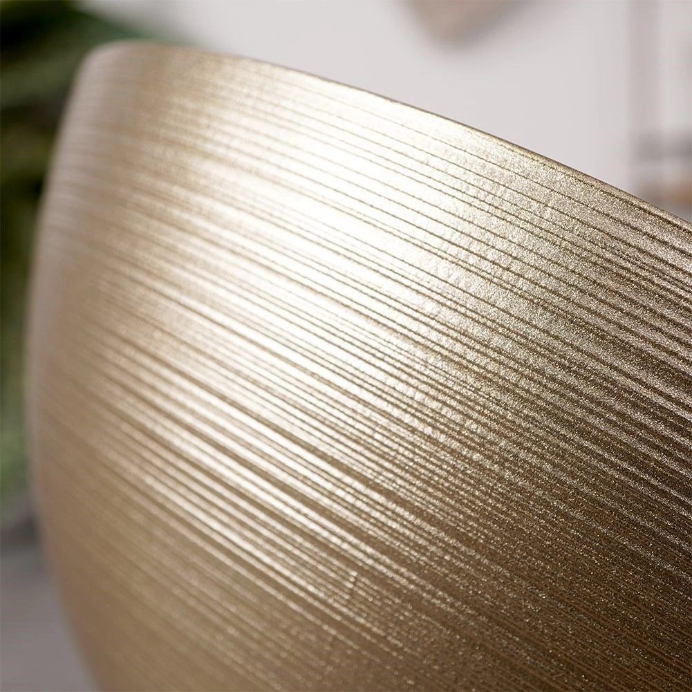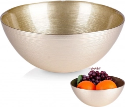 Ova elegantna zlatna staklena zdjela savršen je izbor za svakodnevno posluživanje i svečane prigode. Zahvaljujući promjeru od 21 cm i zapremnini od 1,7 l, lako ćete poslužiti povrtne i voćne salate, ali i čips ili kokice. Mat vanjska površina s finom strukturom horizontalnih pruga daje zdjeli moderan izgled i ističe prezentaciju vaših jela.