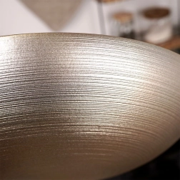 Elegantna staklena zdjela u zlatnoj izvedbi promjera 30 cm i zapremnine 2,2 l. Idealna za salate, voće i posluživanje jela. Vanjska mat površina s nježnim vodoravnim prugama djeluje dekorativno i daje stolu stil. Univerzalna uporaba, efektan izgled i praktična veličina čine ovu zdjelu izvrsnim pomagačem za svakodnevne i svečane prigode.