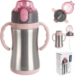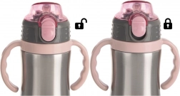 Uživajte u udobnom ispijanju bez prolijevanja. Šalica je izrađena od kvalitetnog nehrđajućeg čelika iznutra i izvana, a poklopac i ručke su od izdržljive plastike u ružičastoj boji. Vakuumska izolacija pomaže dulje zadržati stabilnu temperaturu napitka, bilo da je riječ o čaju, kakau ili osvježavajućoj limunadi.
