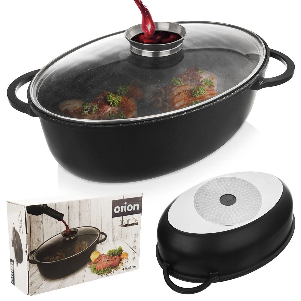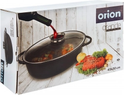 U pakiranju se nalazi 1× duboki ovalni pekač (vanjske dimenzije 45 × 27,5 × 13 cm, unutarnje 37,5 × 25 × 13 cm, volumen 8 l) i 1× stakleni poklopac (vanjske dimenzije 39 × 26,5 × 7 cm). ORION – originalan proizvod češkog brenda proizveden u skladu s europskim standardima.